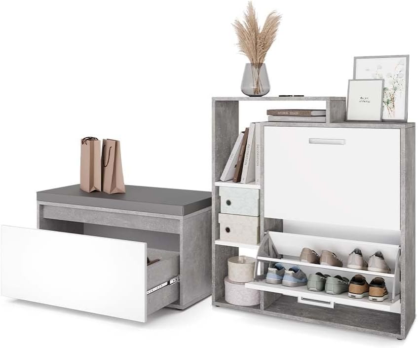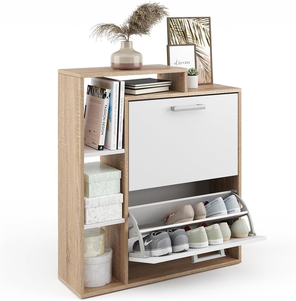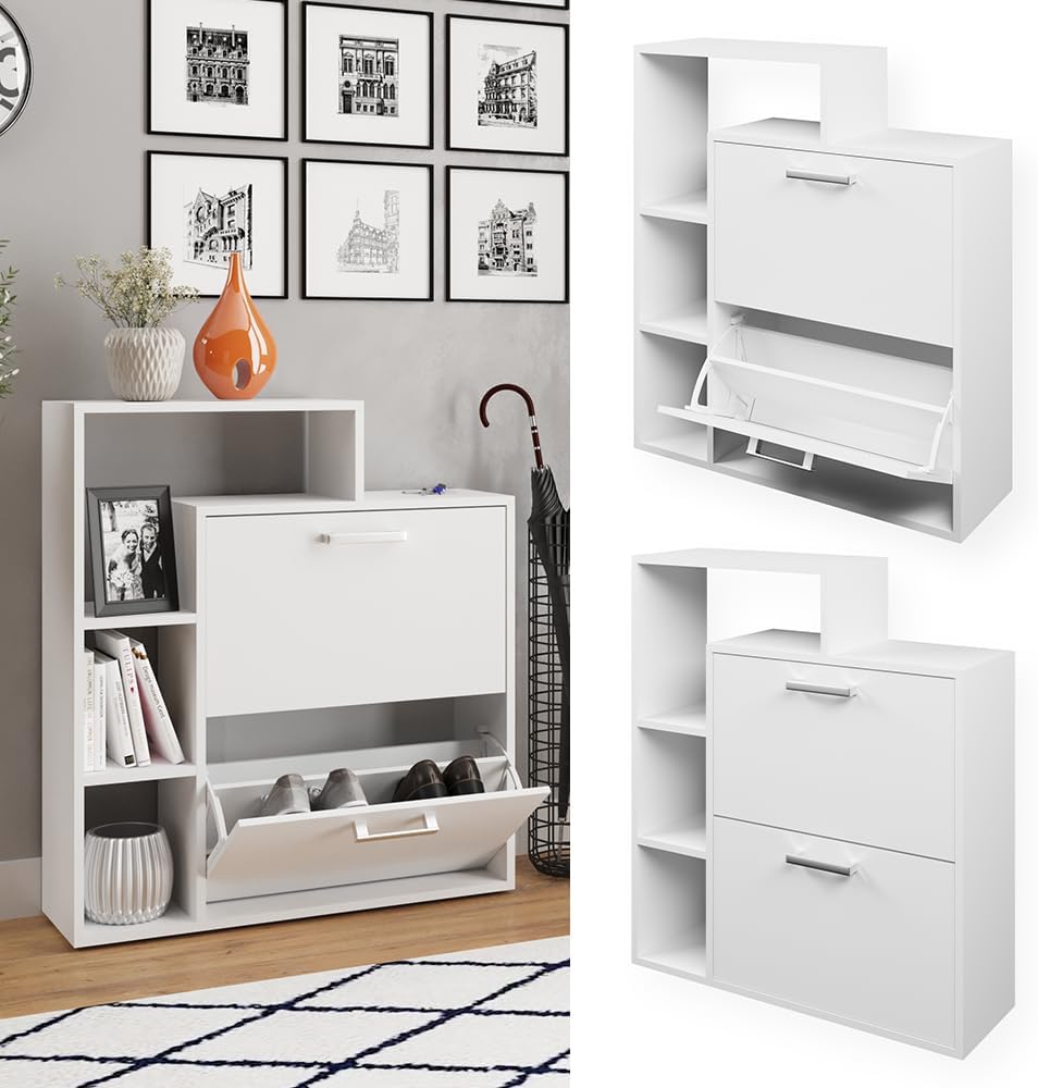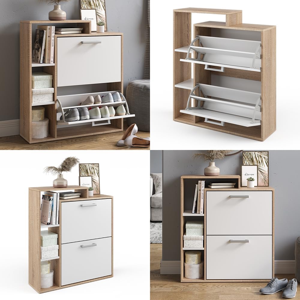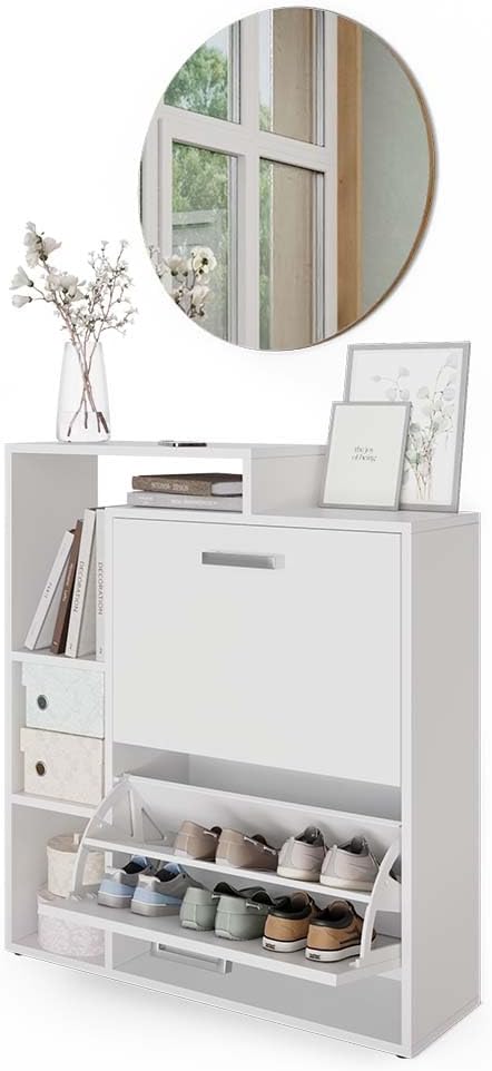 - La scarpiera dispone di due ripiani pieghevoli per scarpe, offre uno scaffale aperto e sfrutta lo spazio verticale. Una soluzione pratica e