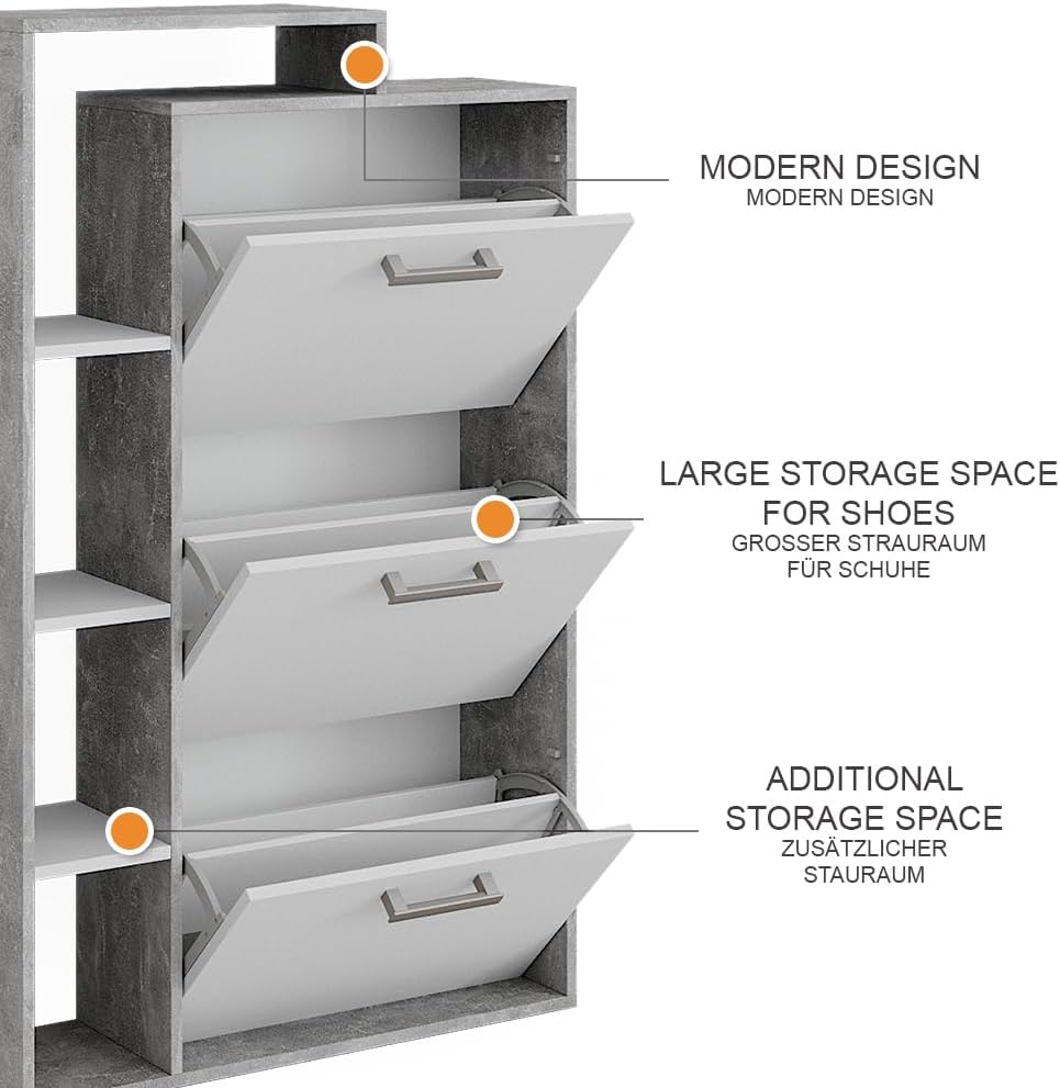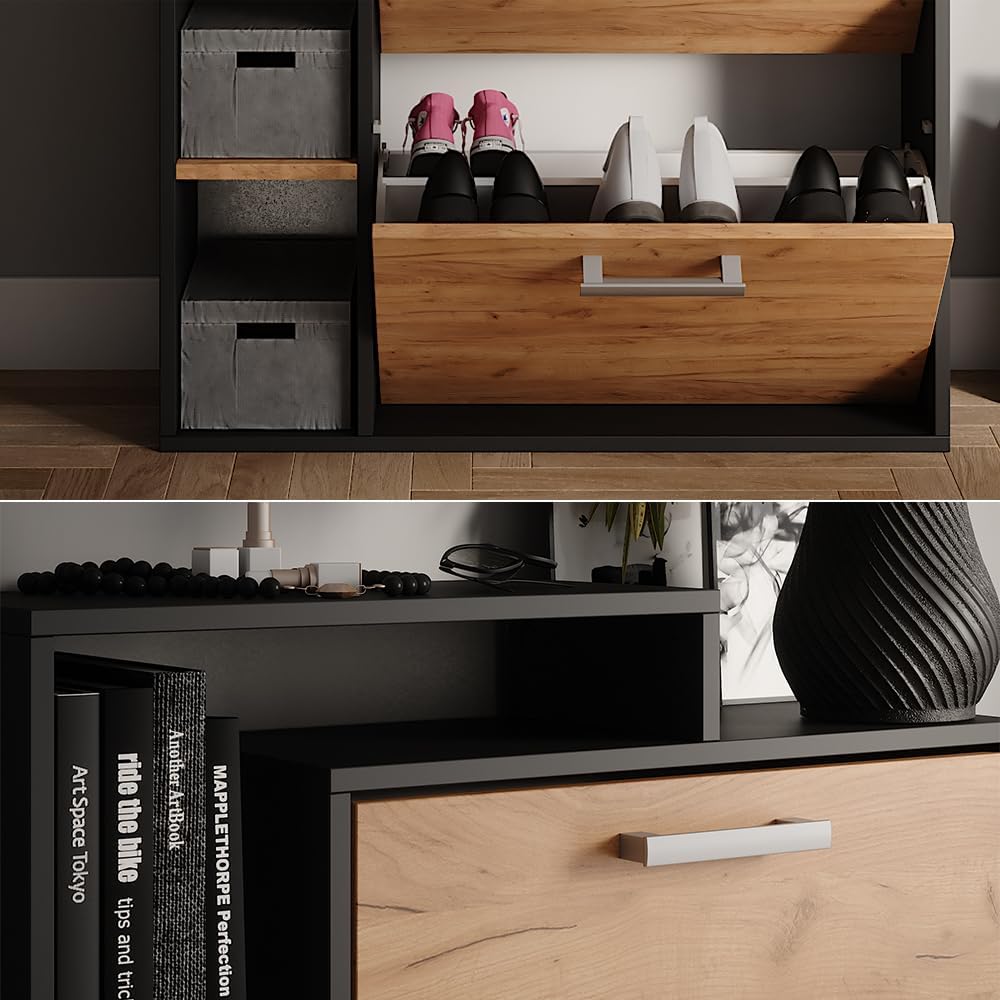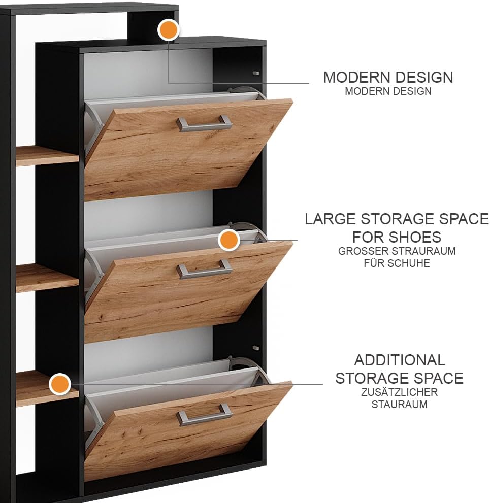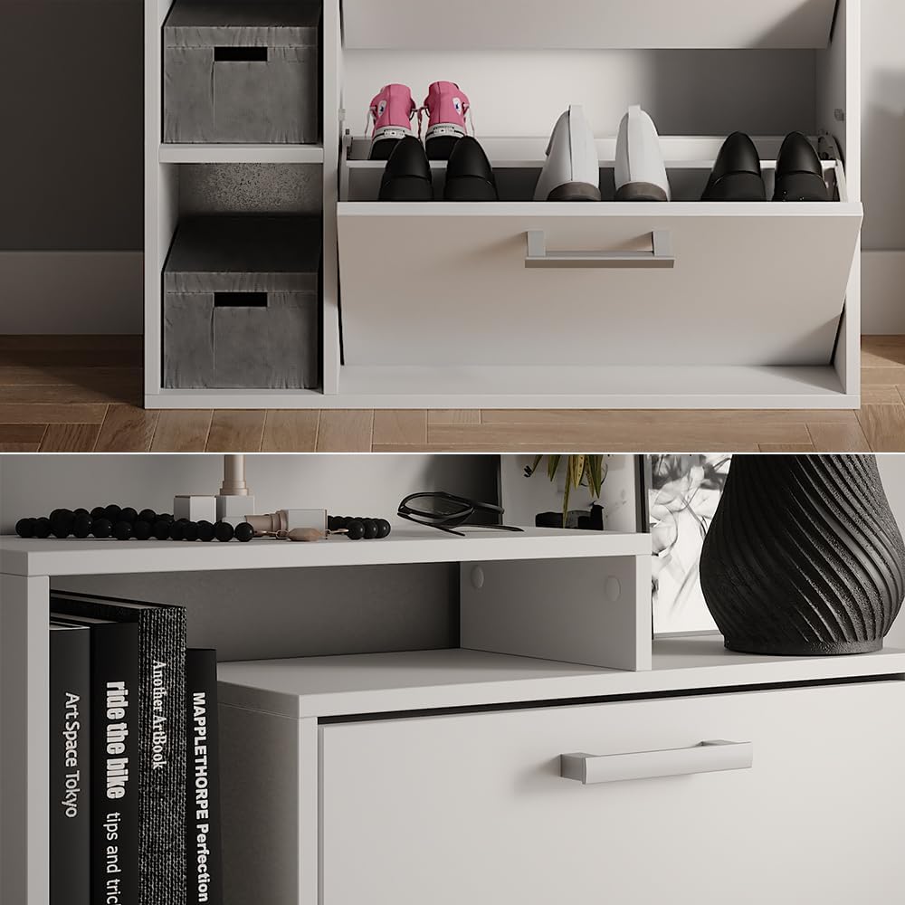 - La scarpiera dispone di due ripiani pieghevoli per scarpe, offre uno scaffale aperto e sfrutta lo spazio verticale. Una soluzione pratica e