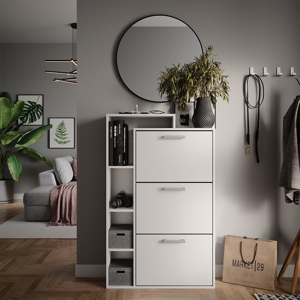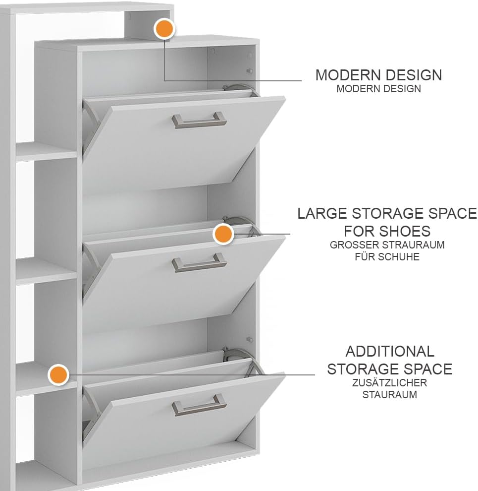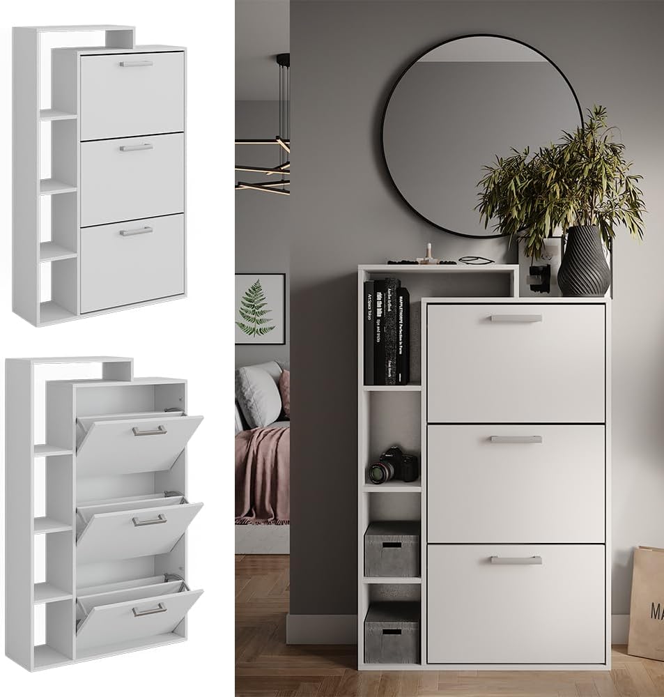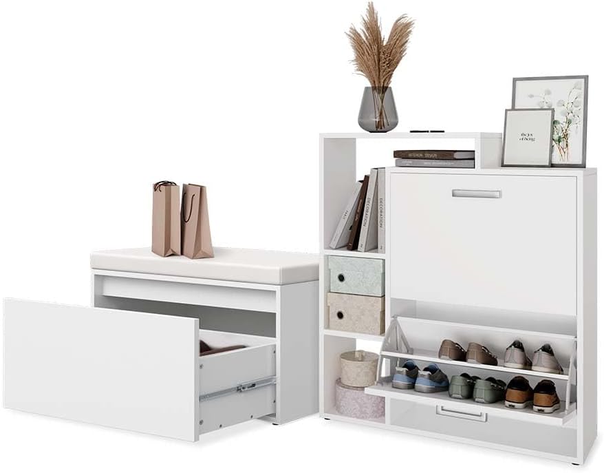 - MATERIALE: La scarpiera bianca salvaspazio è composta da un truciolato di 16 mm di facile manutenzione, con rivestimento in resina melaminica.