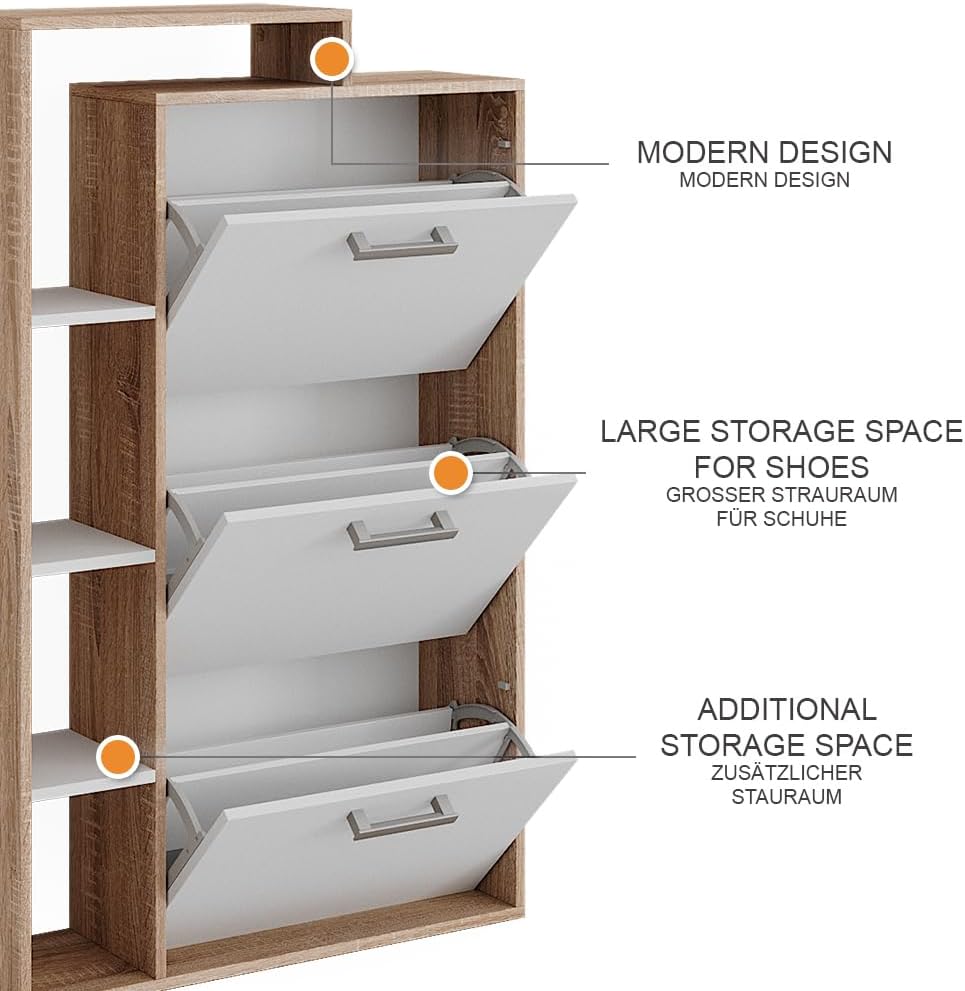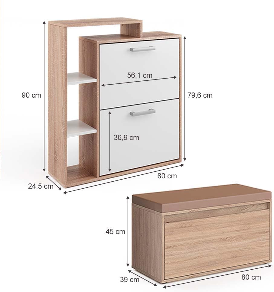 Vicco Scarpiera da ingresso Orlando, Sonoma/Bianco, 80 x 90 cm
