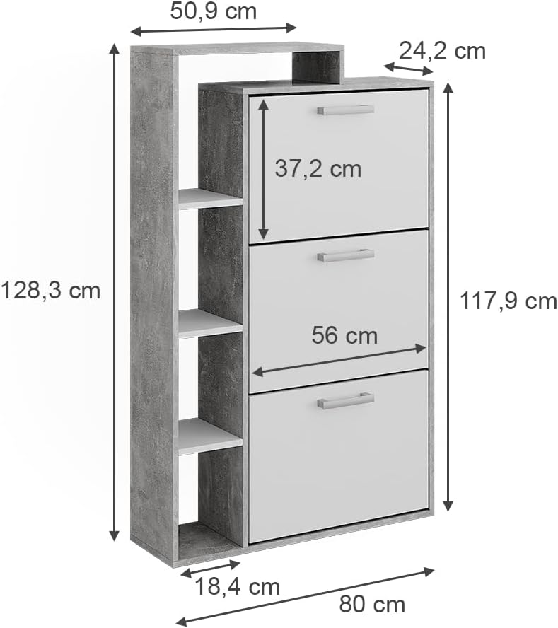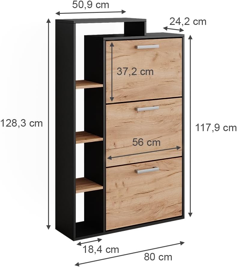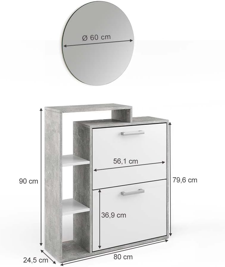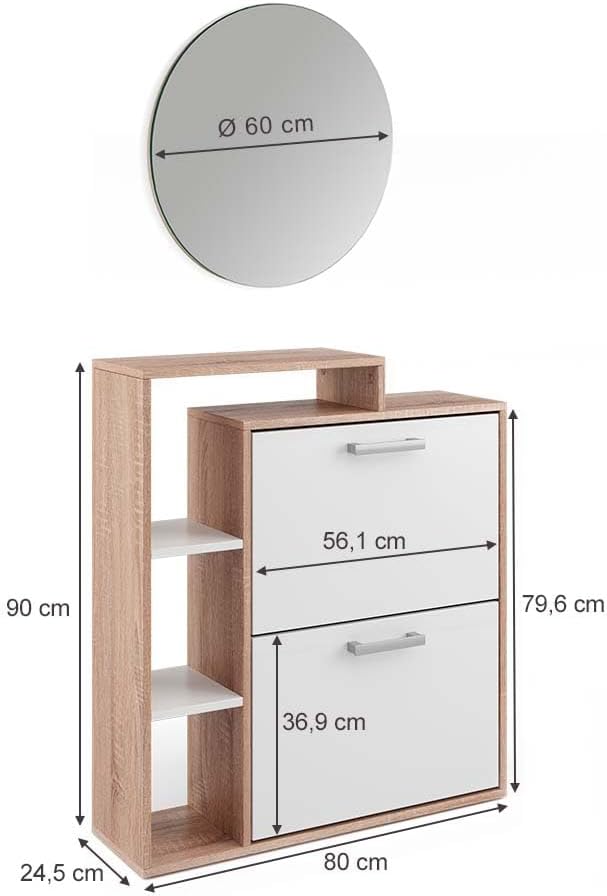 - DIMENSIONI: La scarpiera ha le seguenti misure: 80 cm - Larghezza, 90 cm - Altezza, 25 cm - Profondità. Tutte le dimensioni dettagliate sono indicate nelle foto.