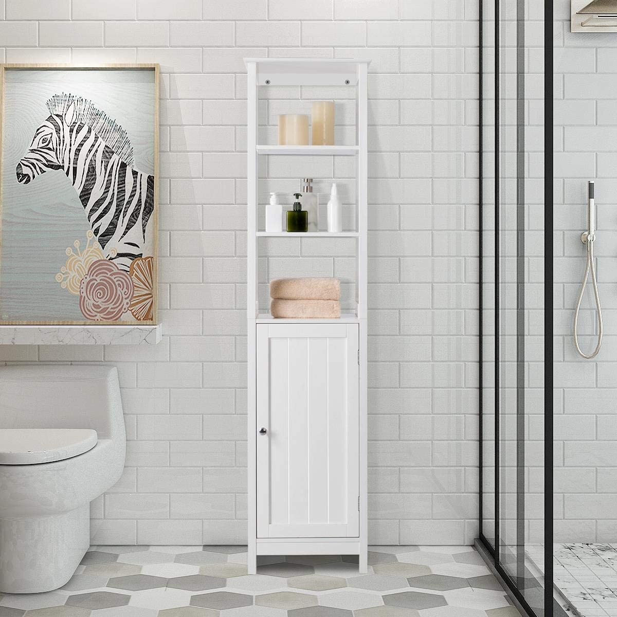 Armadietto da Bagno a Colonna Mobile da Terra con Ripiano e Ante Mobiletto in Legno