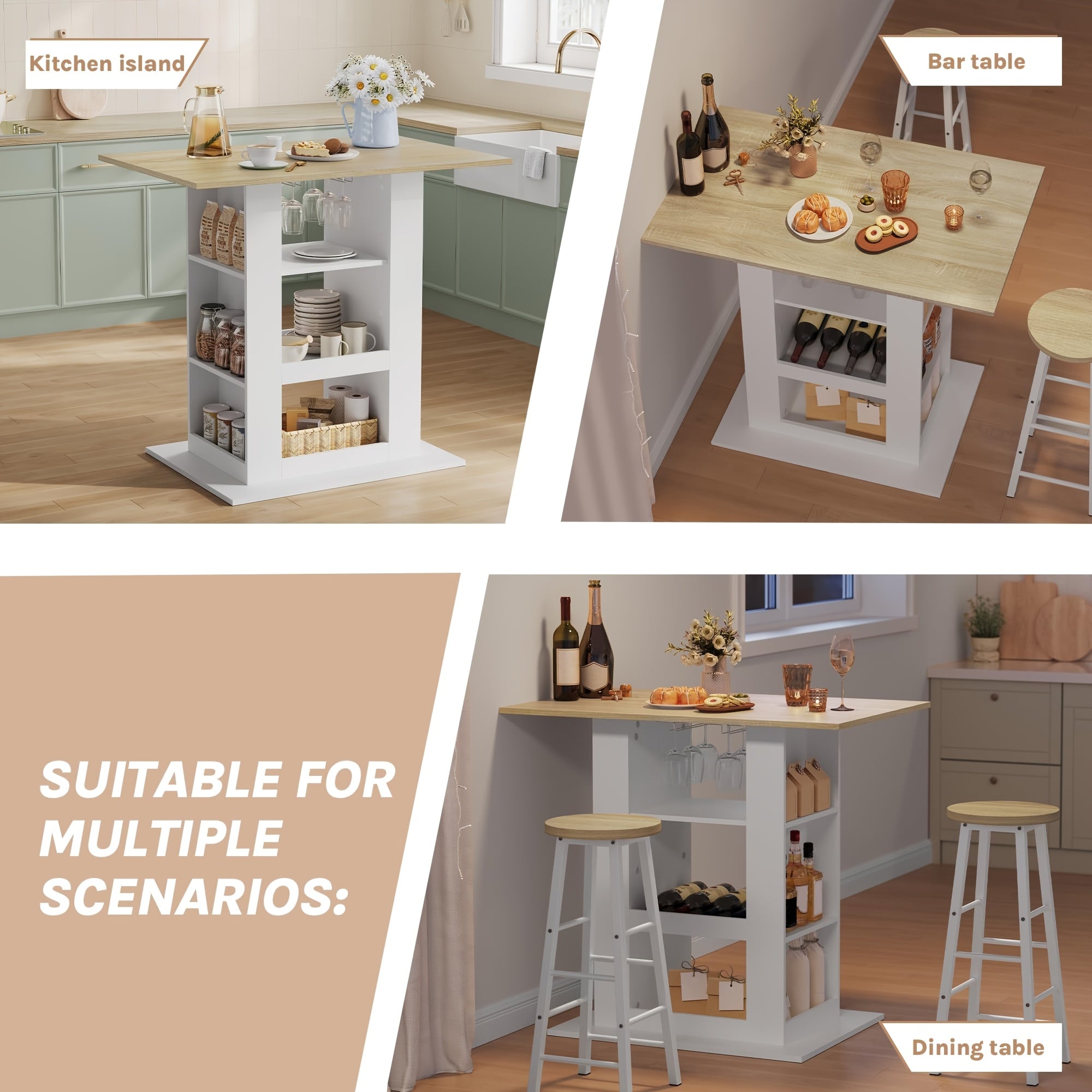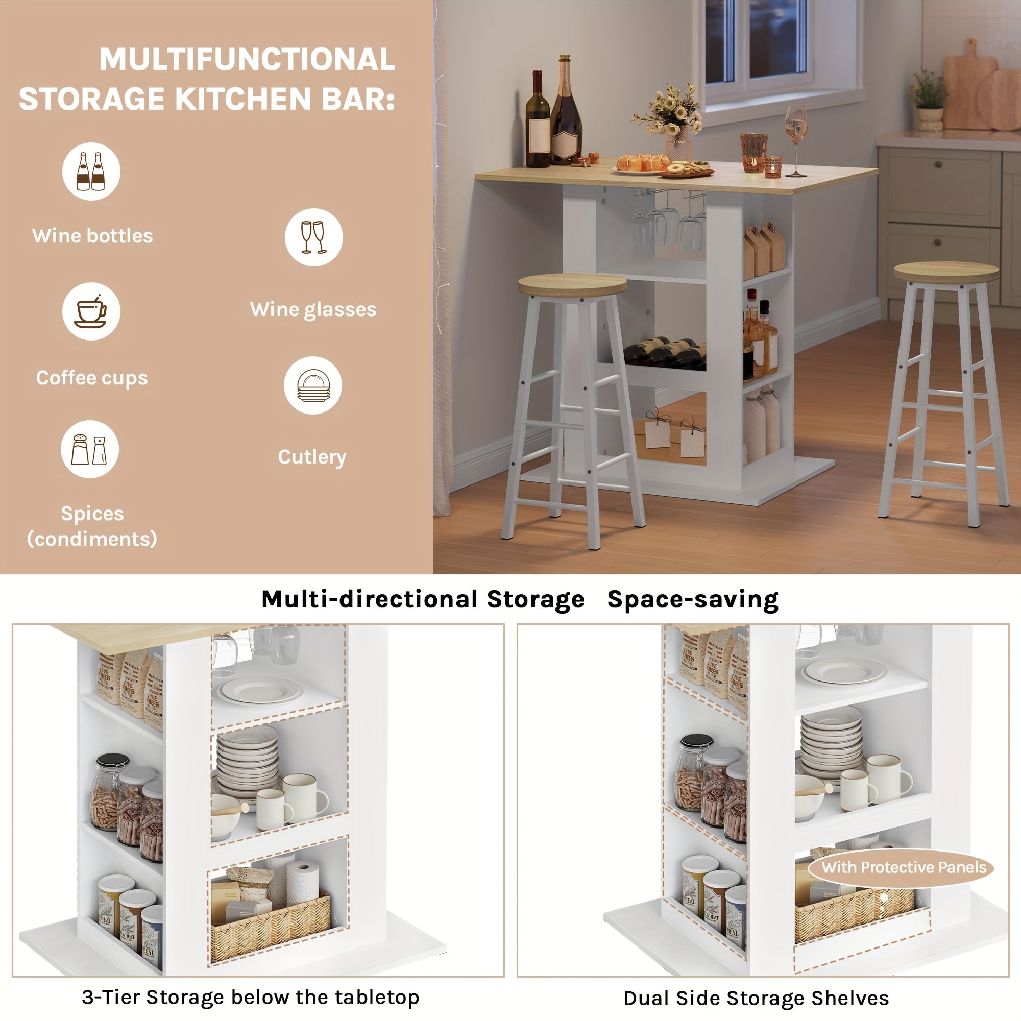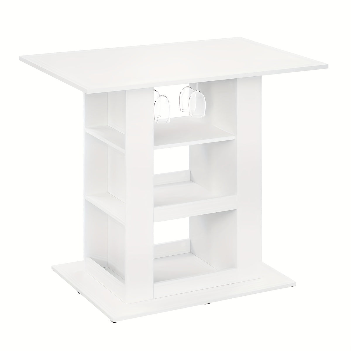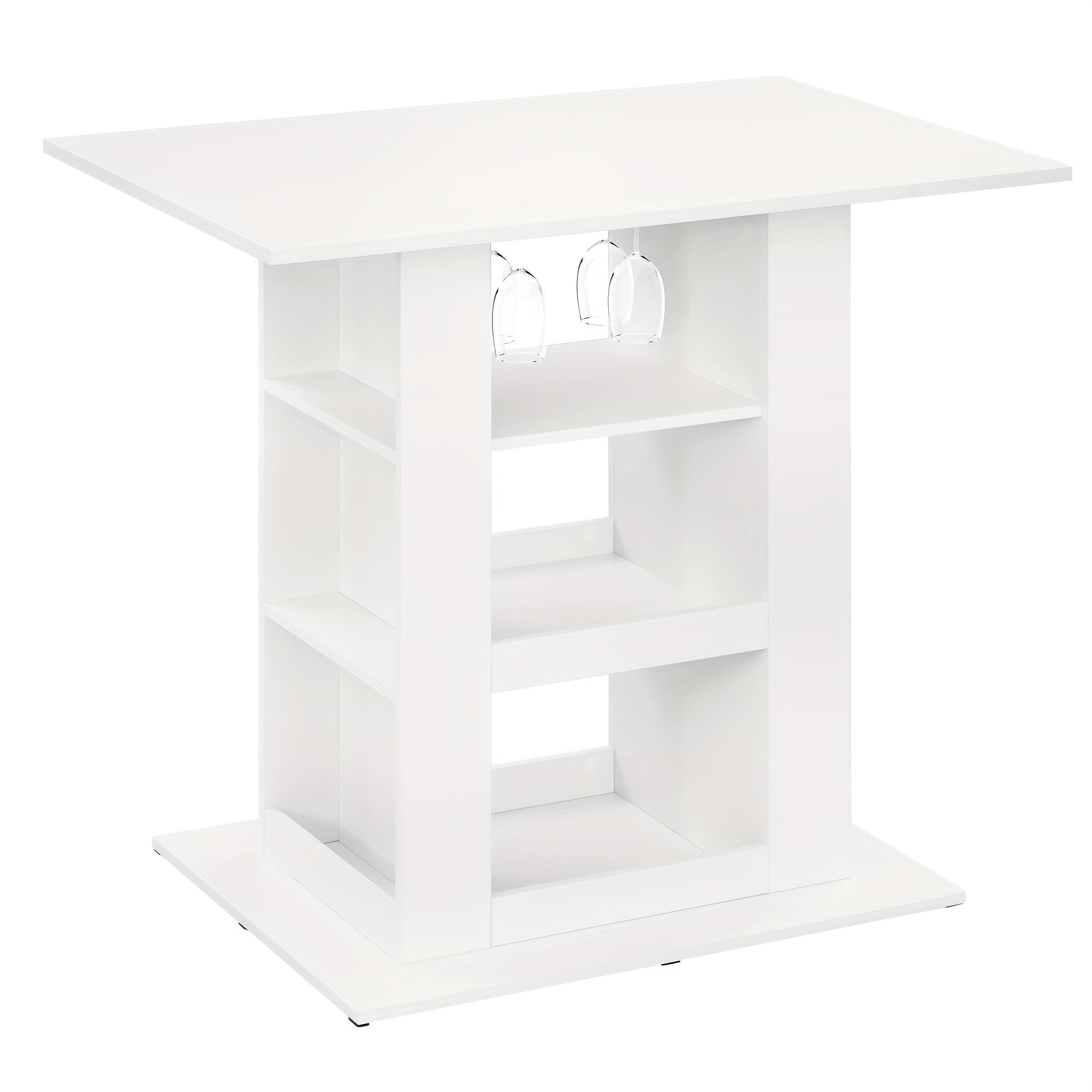 Tavolo multifunzionale che combina eleganza e praticità per cucina e soggiorno. Dotato di due ripiani in vetro trasparente per esporre bicchieri e accessori, tre spaziosi compartimenti di stoccaggio per riporre stoviglie e utensili, e ripiani laterali ideali per bottiglie e decorazioni. L'altezza bar di 105 cm lo rende perfetto come...