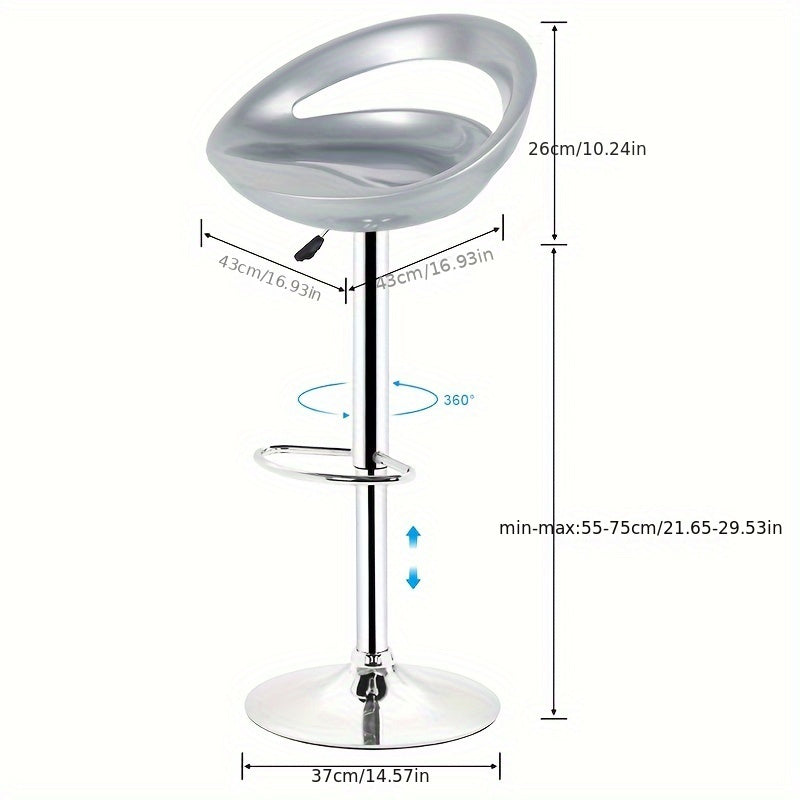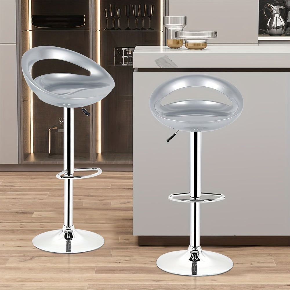 Coppia di sgabelli regolabili in altezza, ideali per banconi cucina e home bar. Dotati di sedute in plastica resistente e gambe in metallo cromato di qualità, offrono stabilità e durabilità. La rotazione 360° consente libertà di movimento, mentre il poggiatesta garantisce comfort durante l'uso prolungato. Privi di schienale, mantengono un...