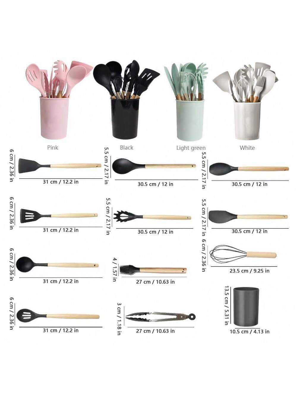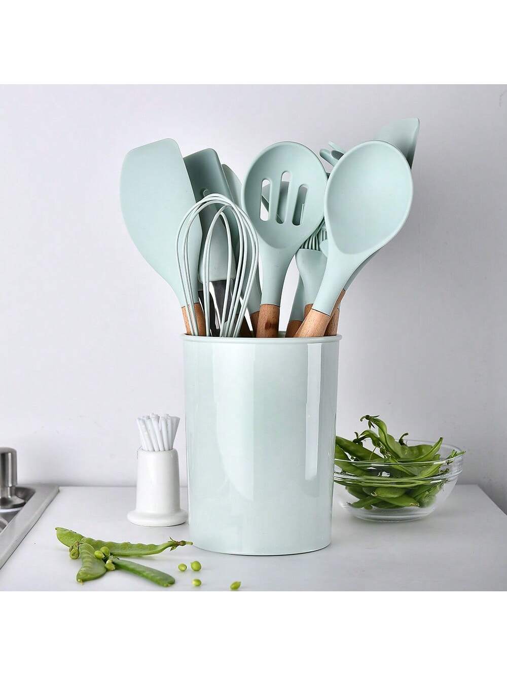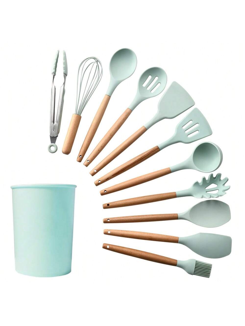 CASARIA Set Di Utensili Da Cucina In Silicone Dal Design Semplice Verde Chiaro Da 12 Pezzi/set