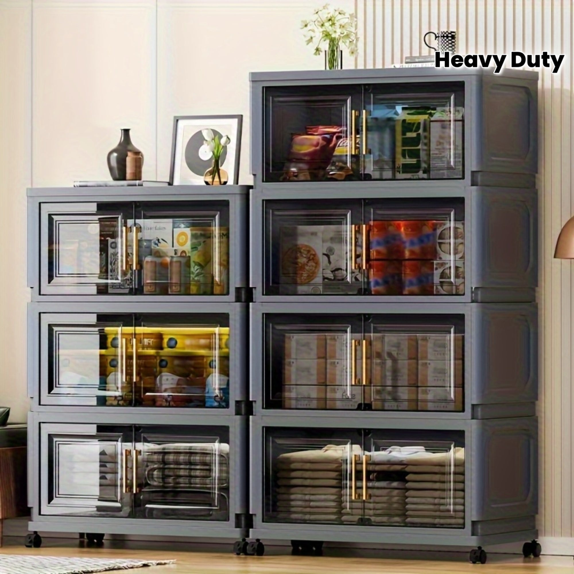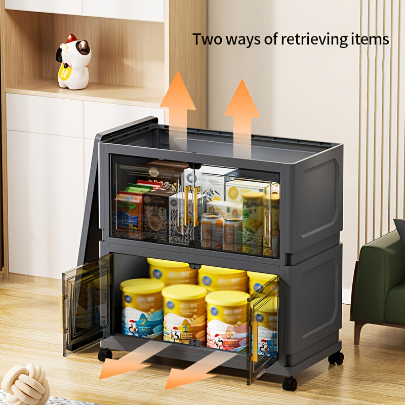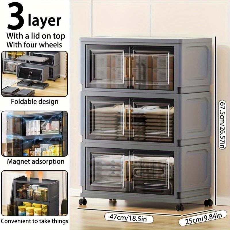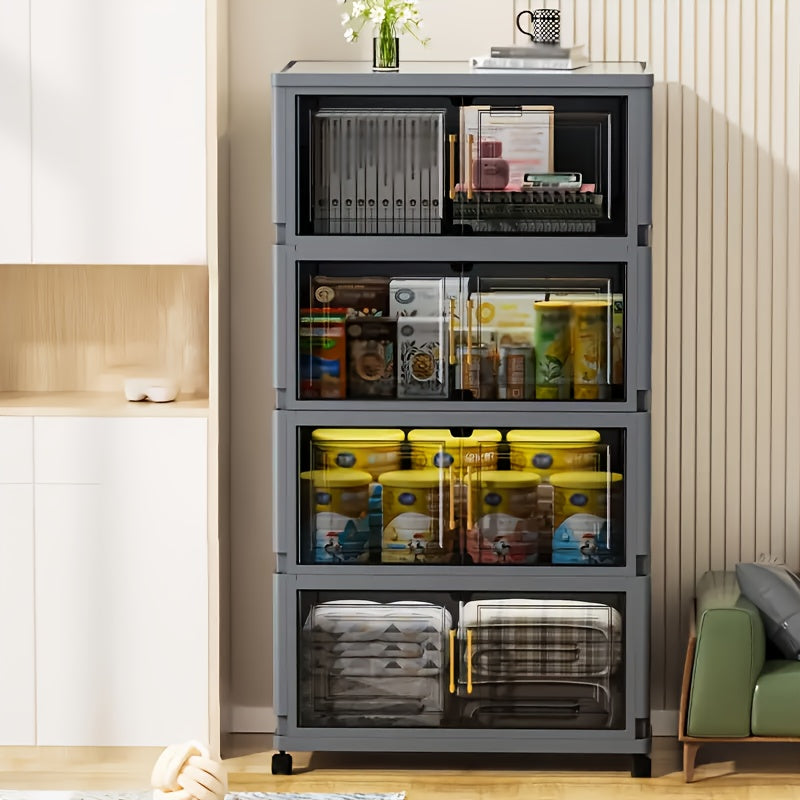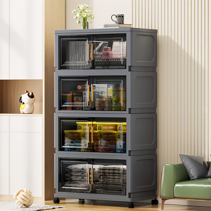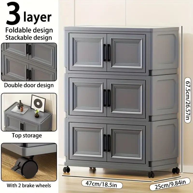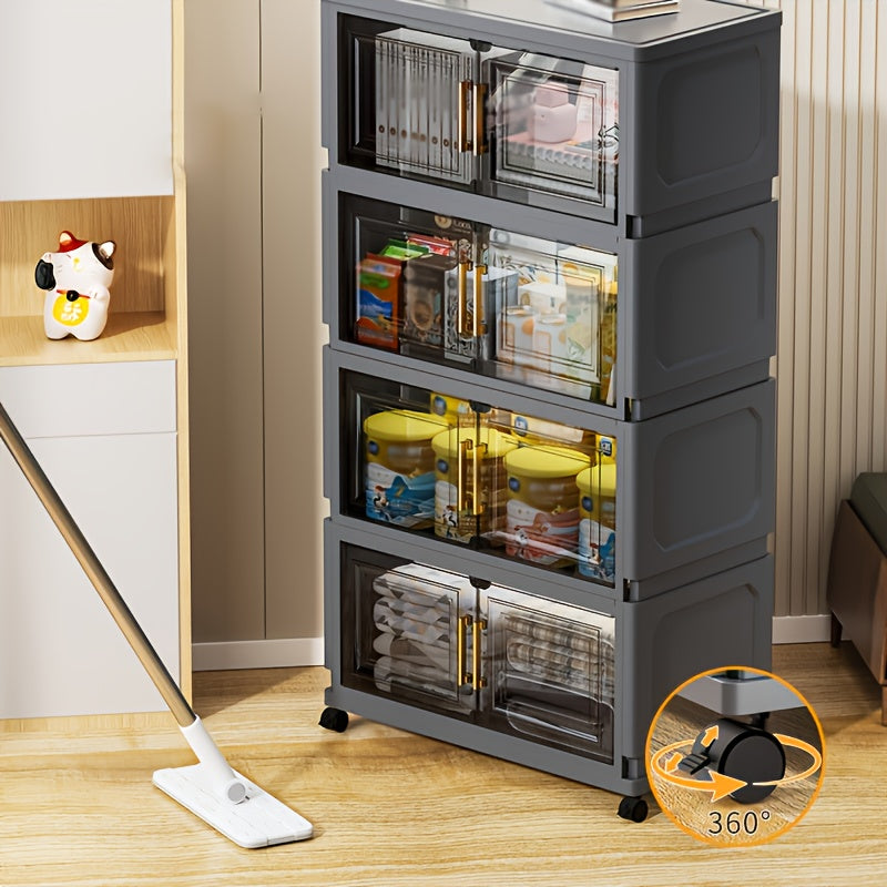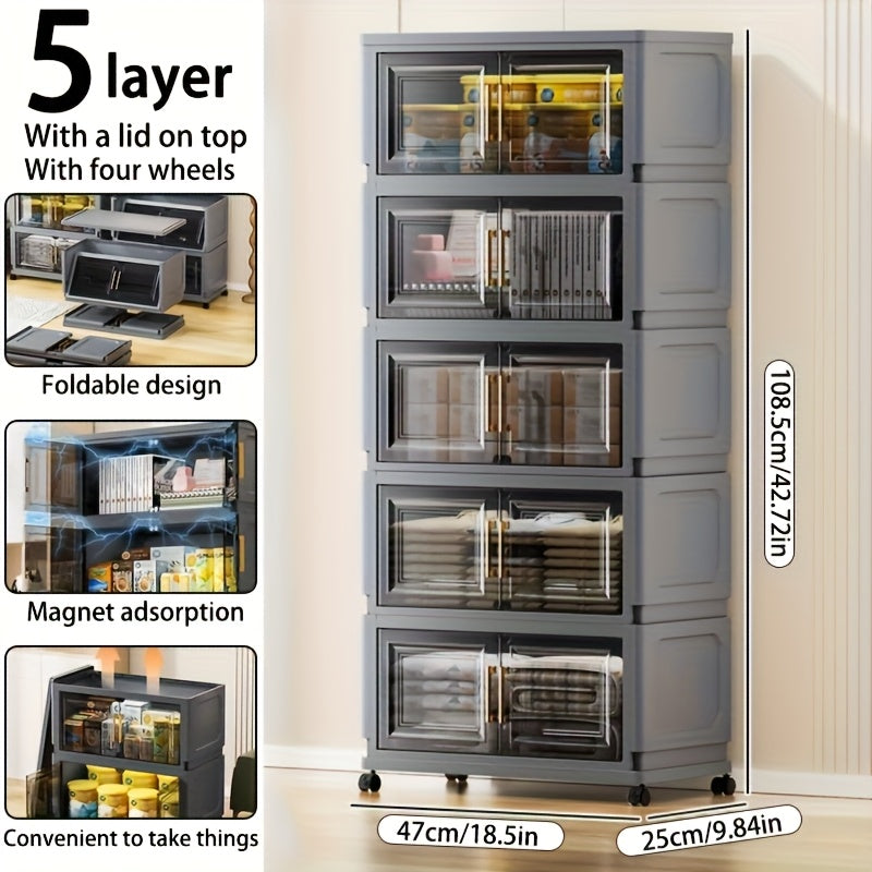 Mobiletto portaoggetti pieghevole in plastica resistente a 3/4/5 ripiani con ante e ruote