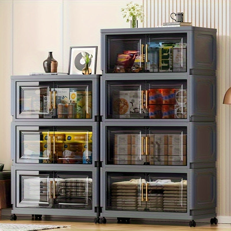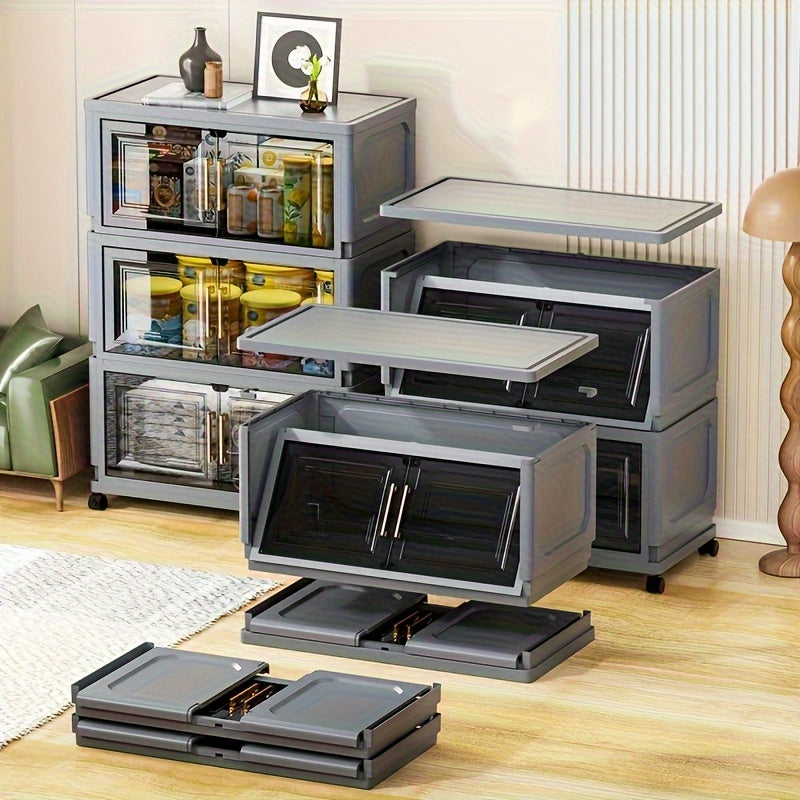 Trasforma il tuo spazio in un'oasi di ordine con questo mobiletto pieghevole intelligente! Realizzato in plastica resistente e disponibile con 3, 4 o 5 ripiani, offre capacità di stoccaggio straordinaria senza occupare troppo spazio. Le ante scorrevoli mantengono tutto nascosto e organizzato, mentre le ruote girevoli ti permettono di spostarlo...
