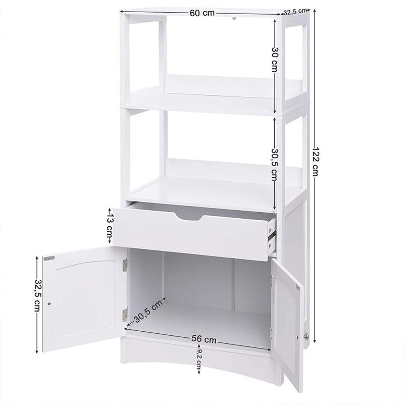 Contiene: 122*60*33 cm a doppia porta, due ripiani, mensola del bagno con cassetto, viti di montaggio, manuale