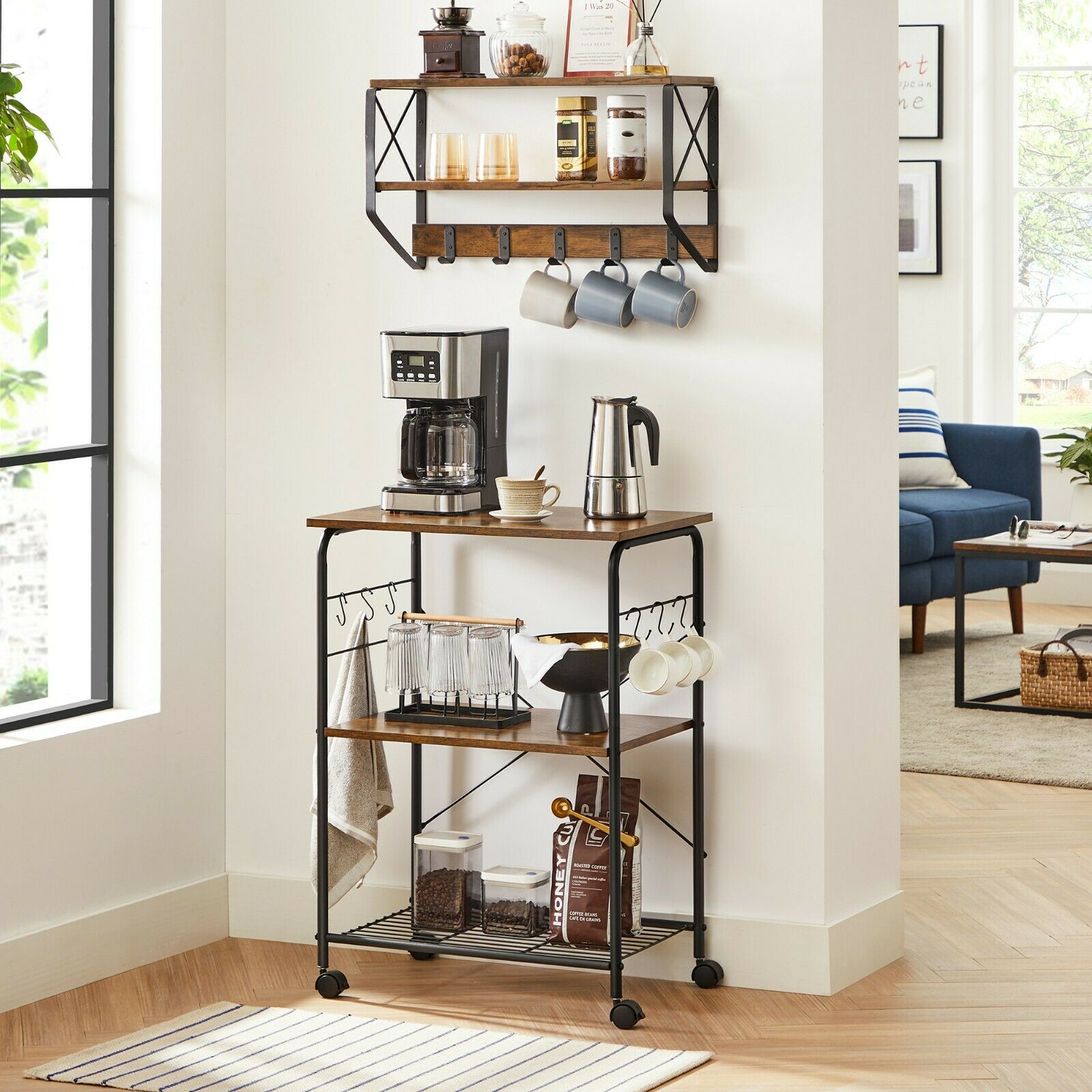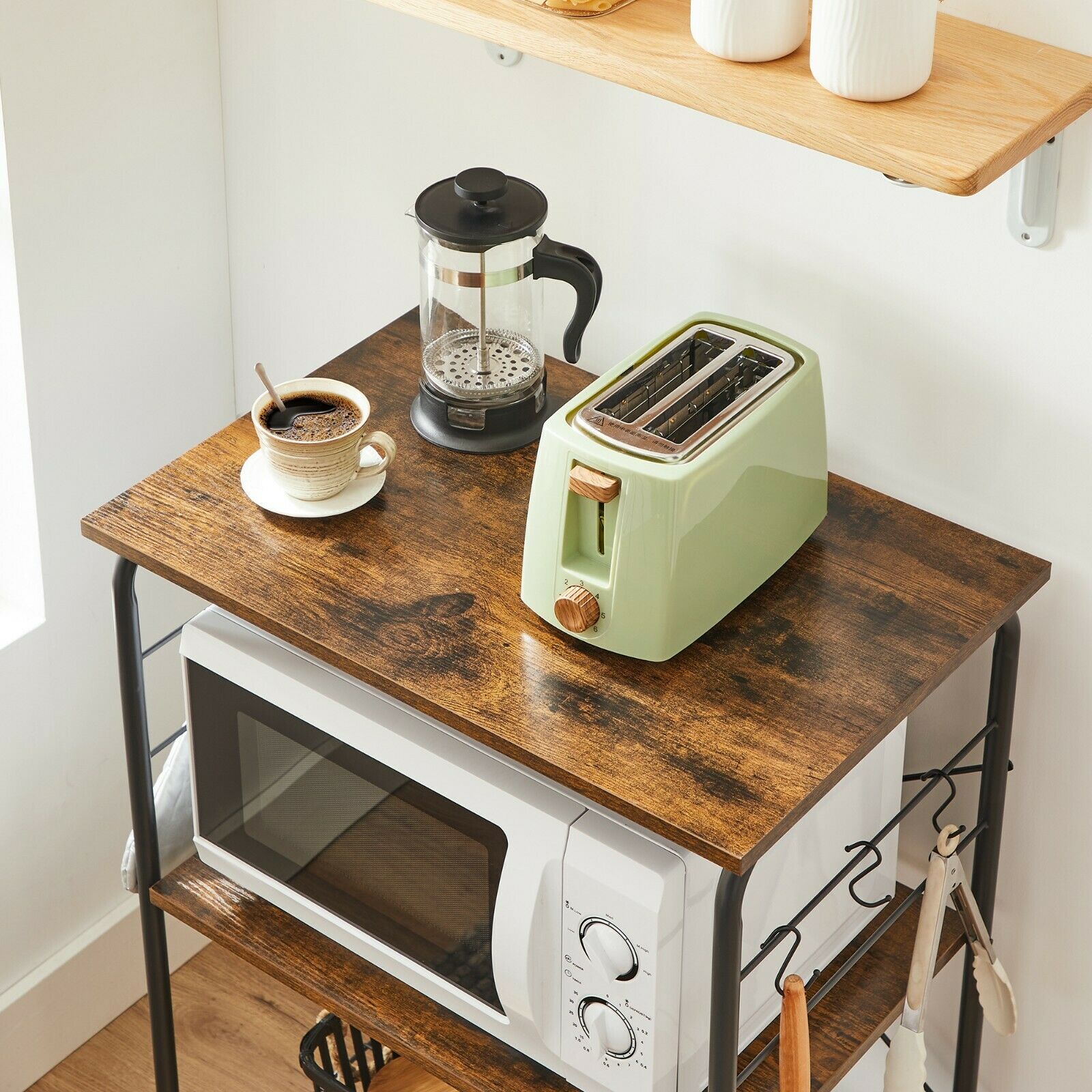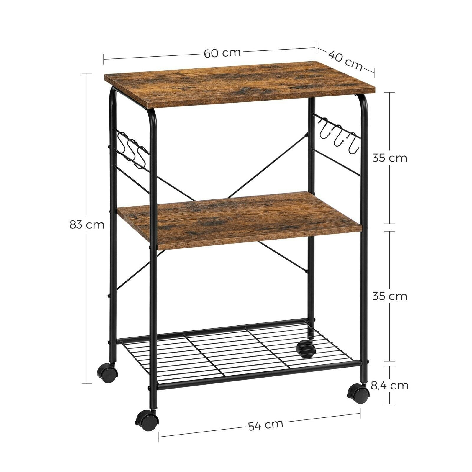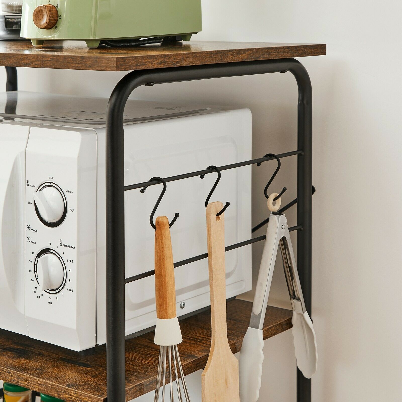 Scaffale da Cucina per Microonde a 3 Livelli con Rotelle 6 Ganci