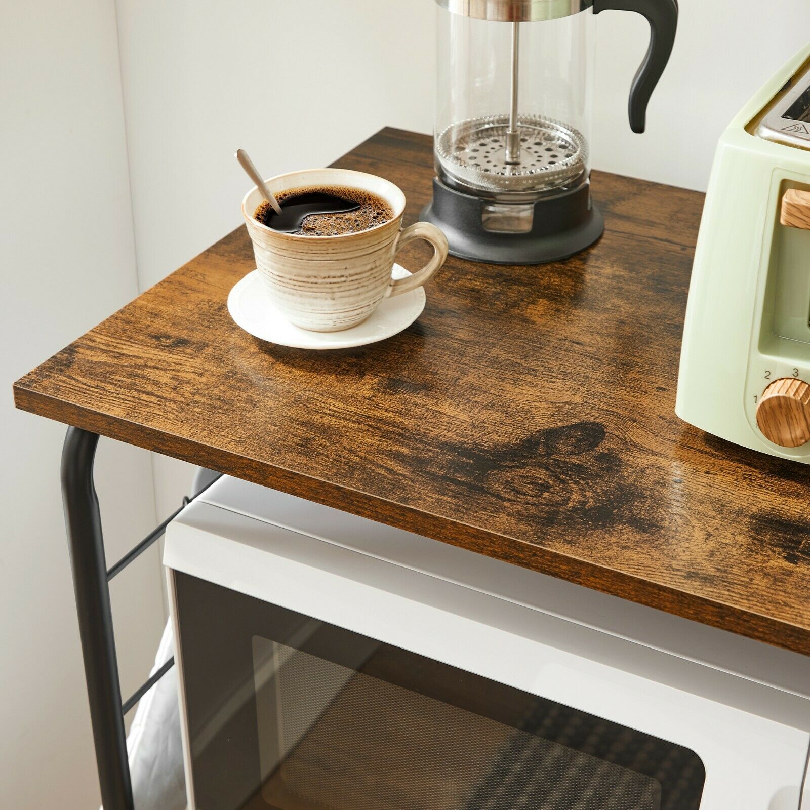 Per liberare il tuo bancone: Uno scaffale da cucina fa proprio al caso tuo! Disponi il tuo forno a microonde o tostapane sul ripiano superiore da 60 x 40 cm, le pentole sul ripiano intermedio, un cesto di frutta in fondo, e appendi asciugamani e guanti da forno sui 6 ganci integrati, tutto pronto!