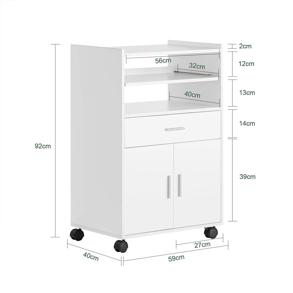 • Perfetto per il microonde, offre ripiani spaziosi per piatti, utensili e ingredienti.