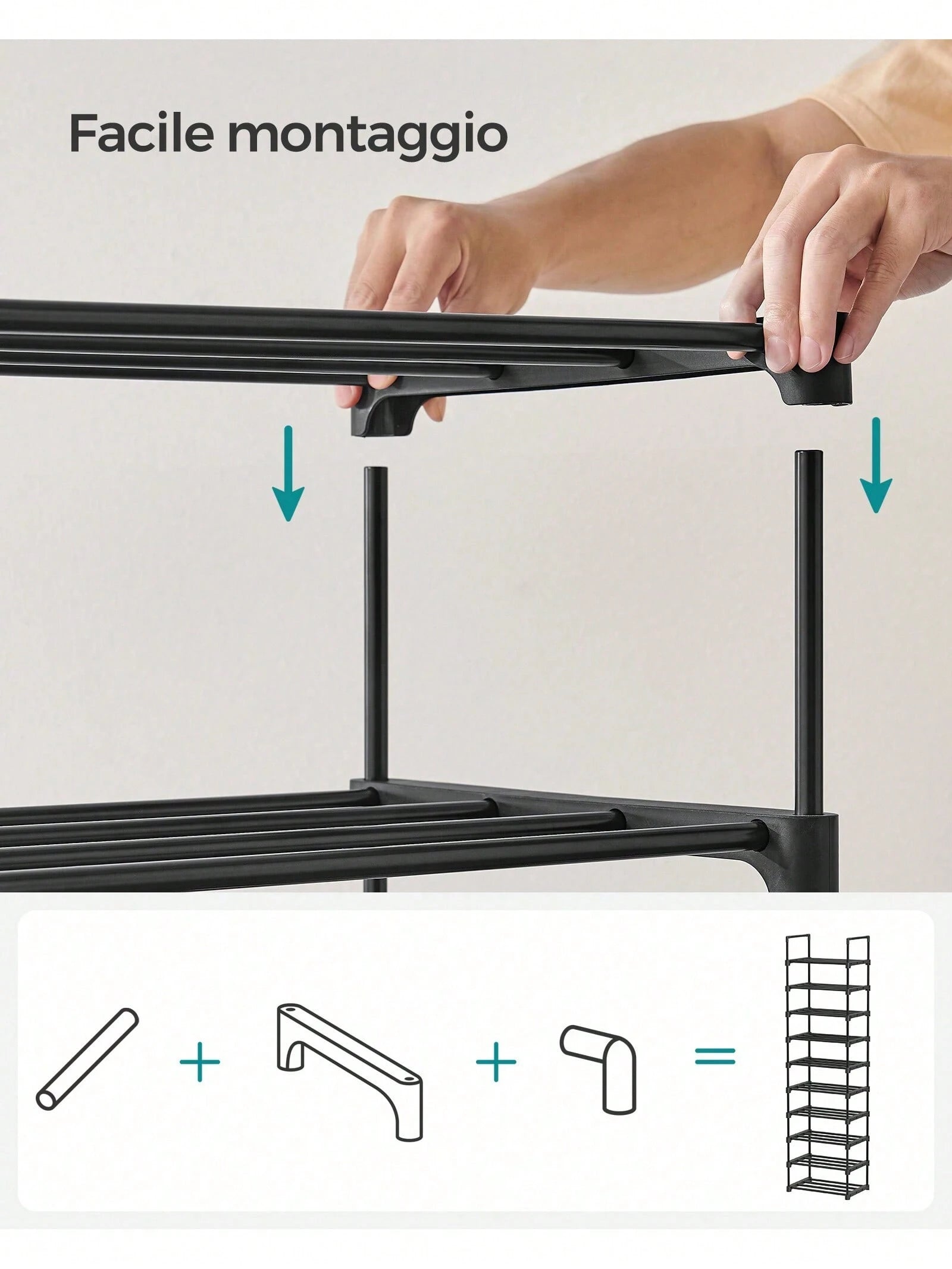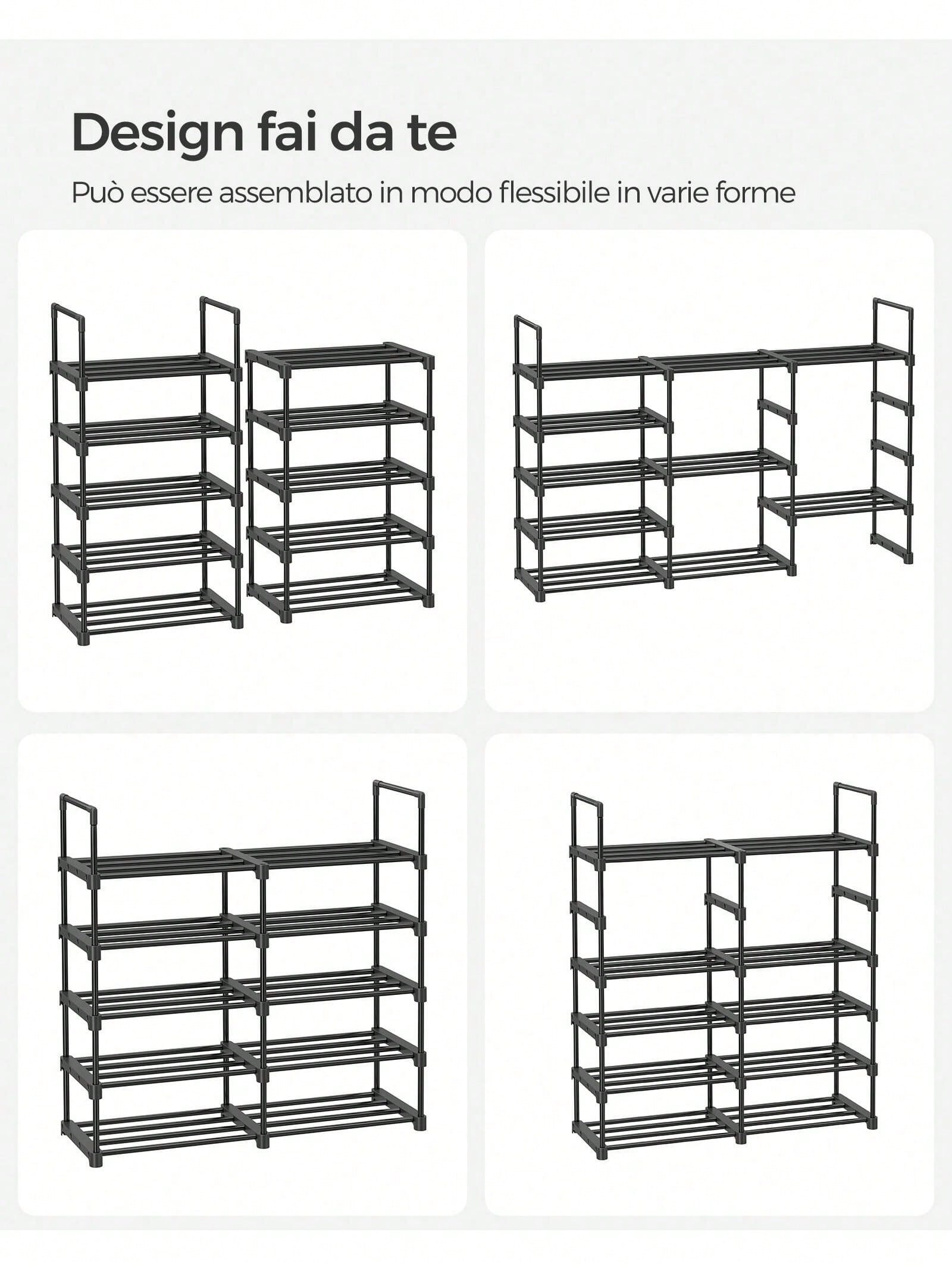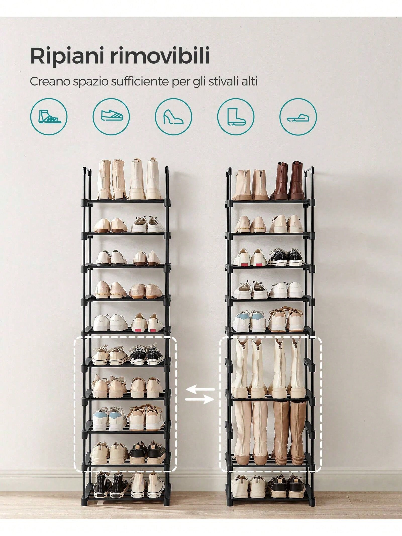 Scarpiera a 10 Ripiani Grande Scaffale Portascarpe in Metallo Fai da Te Scaffale Salvaspazio