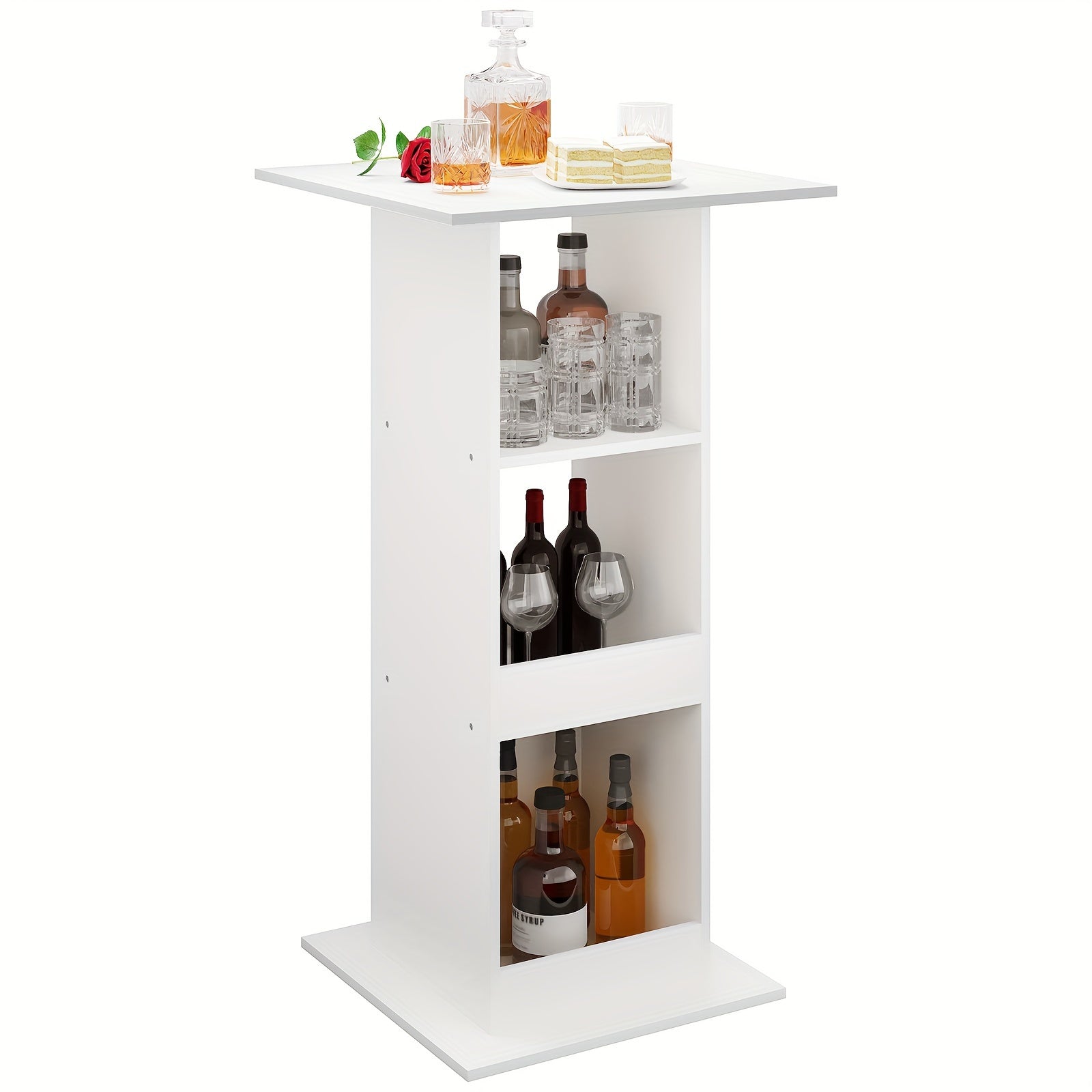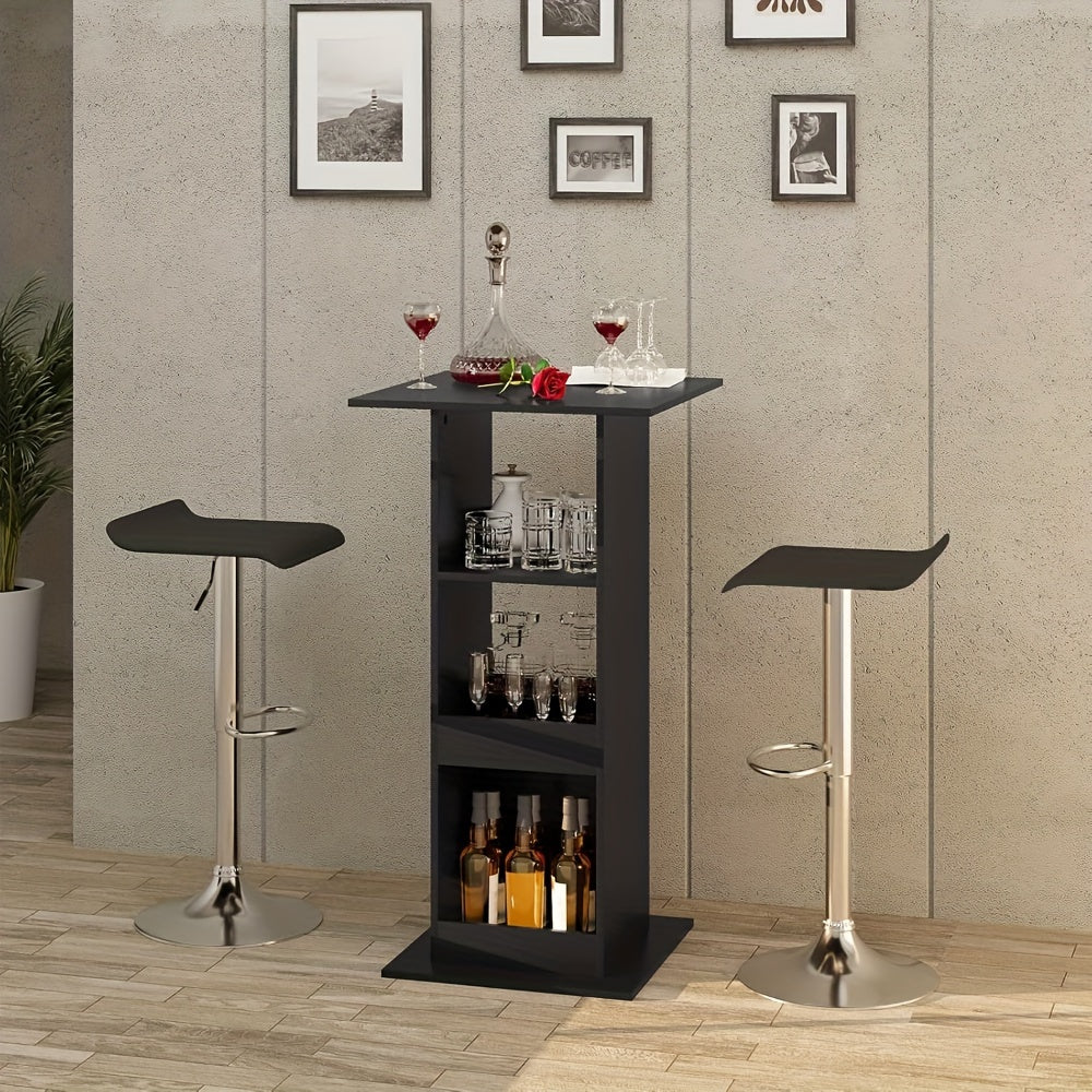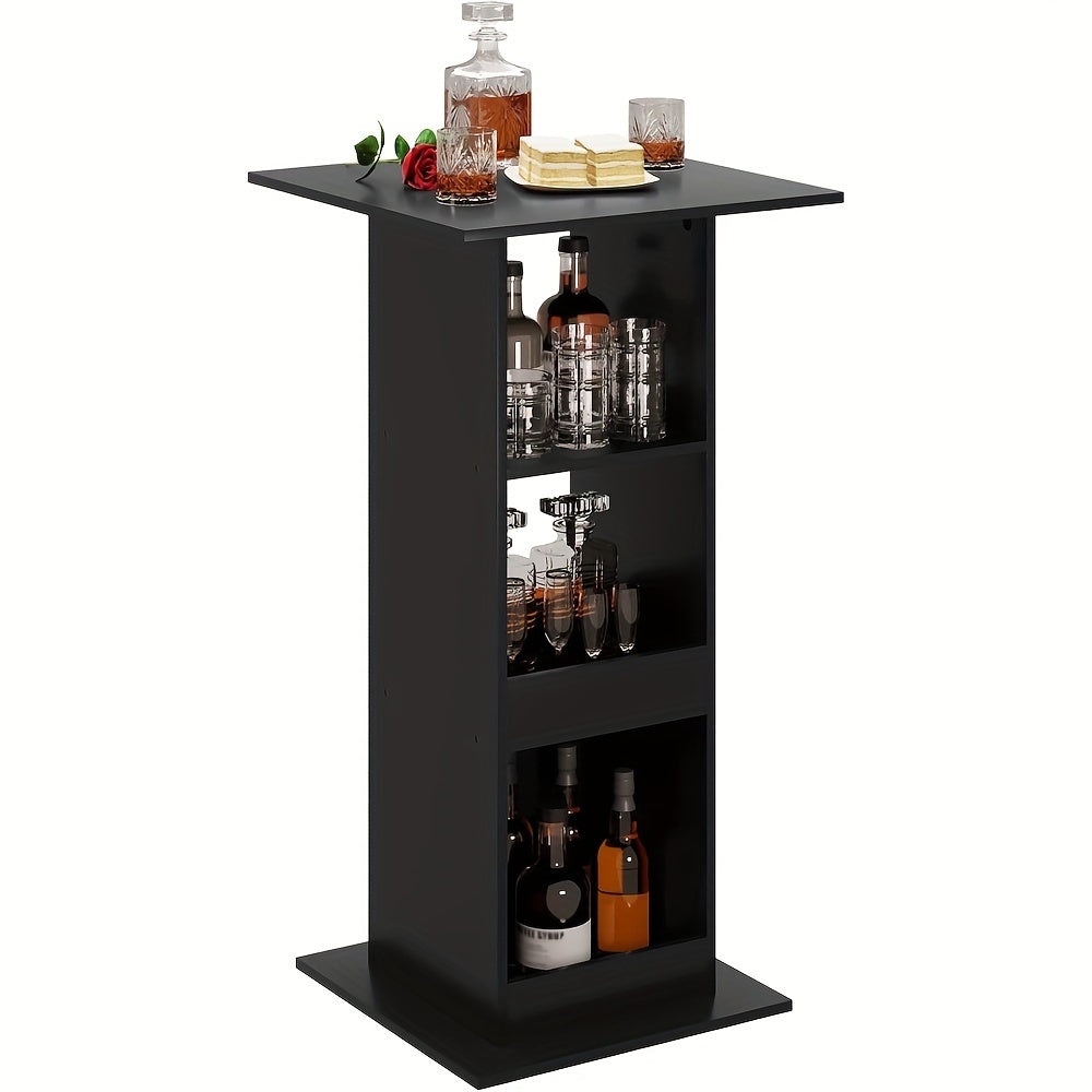 Tavolo quadrato in legno massiccio ideale per bar, cucina e soggiorno. Dotato di 3 ripiani funzionali che offrono ampio spazio di stoccaggio per bottiglie, bicchieri e accessori. L'altezza di 112 cm lo rende perfetto come tavolo da bancone o bistro, garantendo una posizione ergonomica per consumare bevande e snack. La...