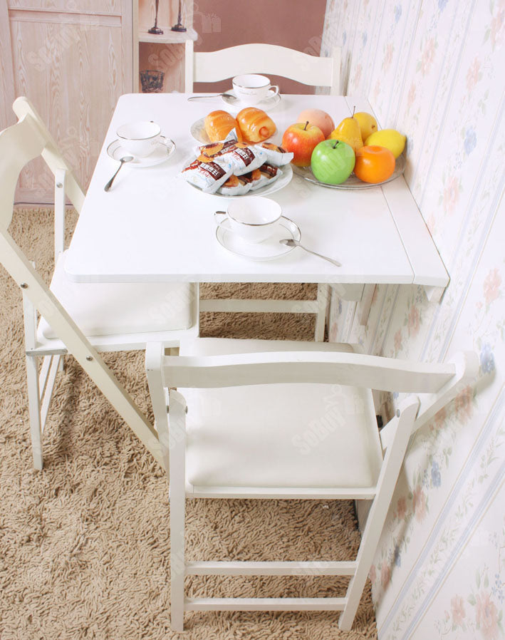 Tavolo da muro pieghevole in legno bianco senza sedia