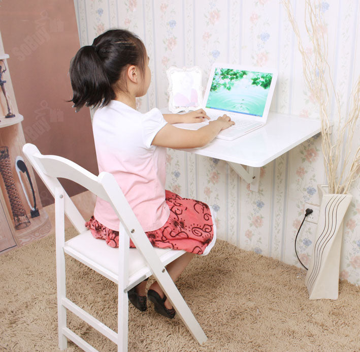 Questo tavolo da muro pieghevole si attacca alla parete con fissaggio in modo sicuro a qualsiasi livello desiderato.