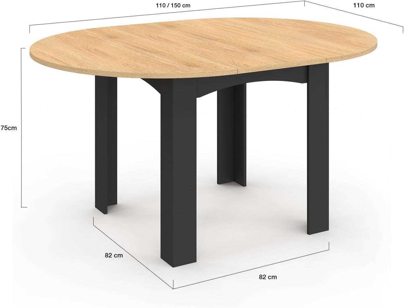 Tavolo da pranzo rotondo allungabile 4-8 persone piano effetto faggio nero 120-160 cm
