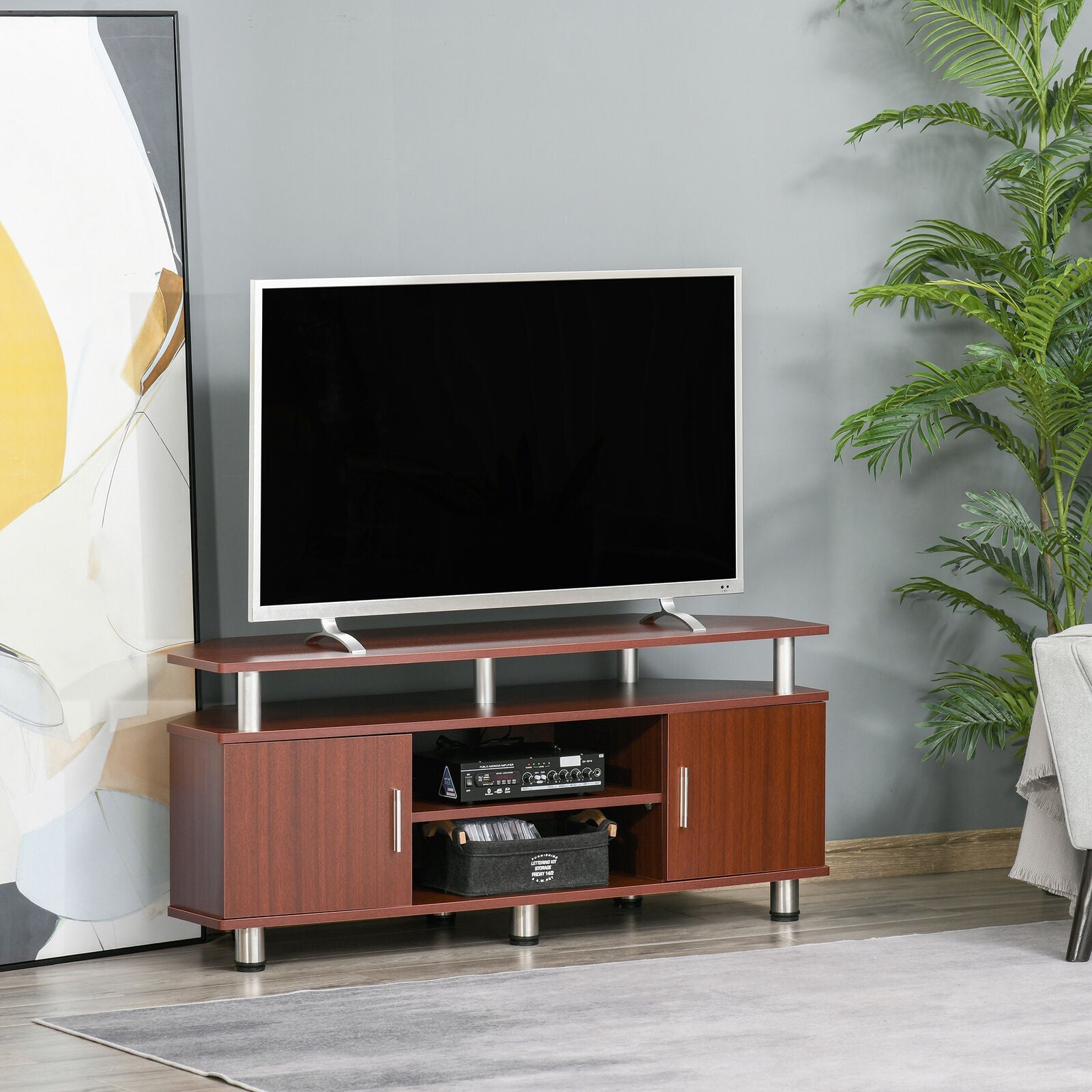 Mobile Porta TV con 2 Ante e Ripiani in Legno e Acciaio