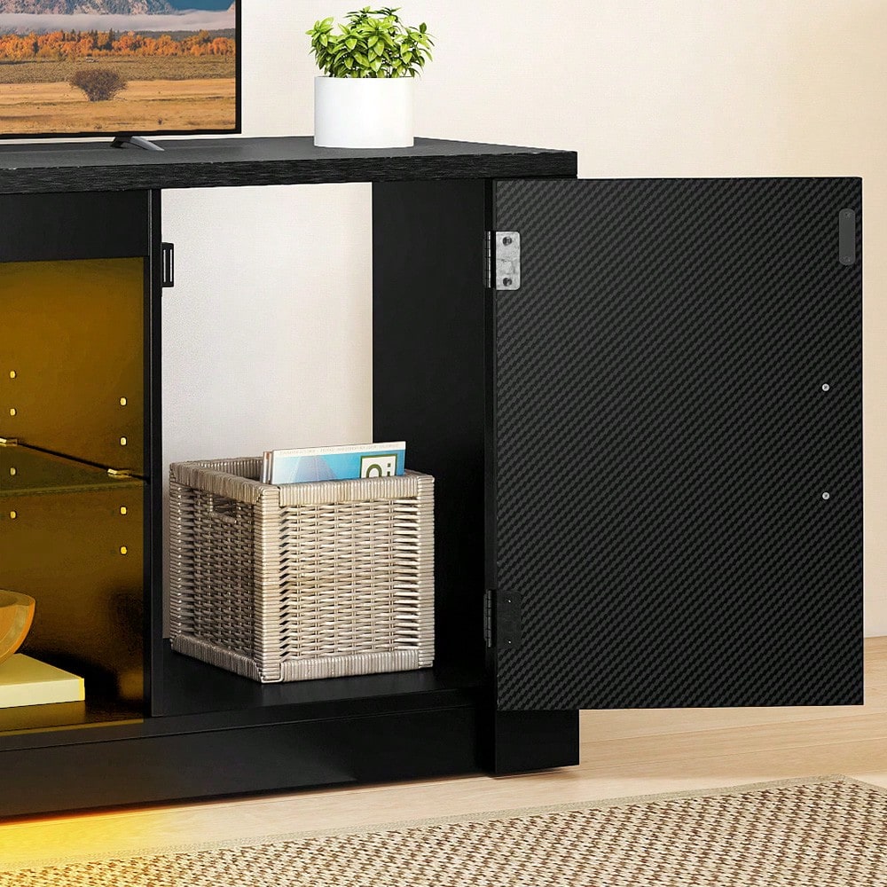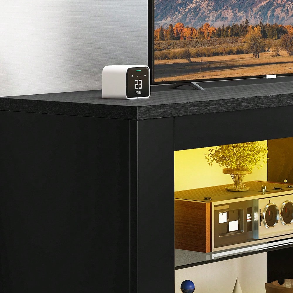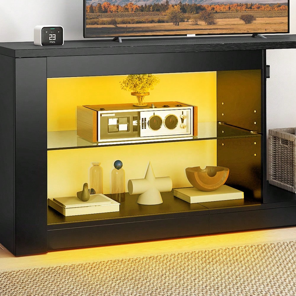• I ripiani in vetro offrono spazio per dispositivi e decorazioni, mentre le luci LED RGB aggiungono un tocco di magia all'atmosfera.