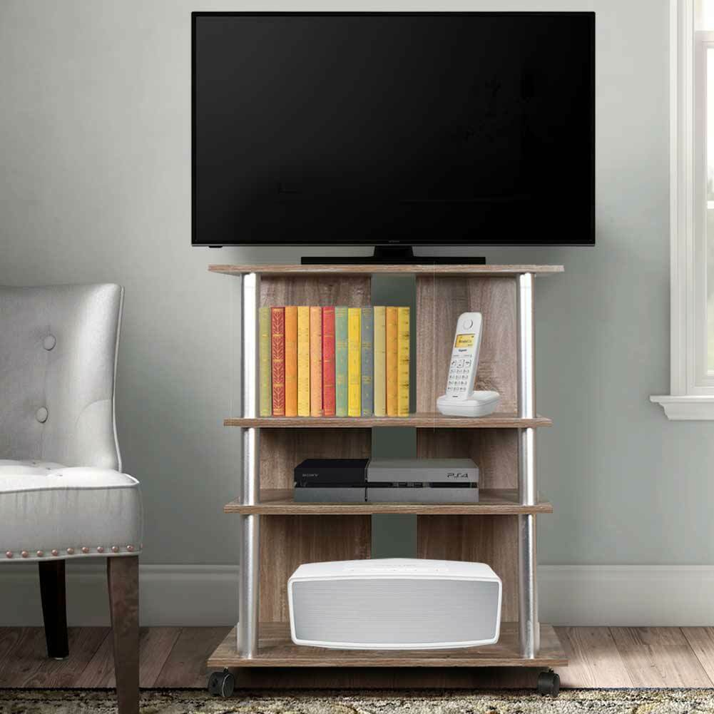 1 x Mobile TV in Legno con 3 Ripiani e Ruote Mobiletto Carrello televisore Bianco