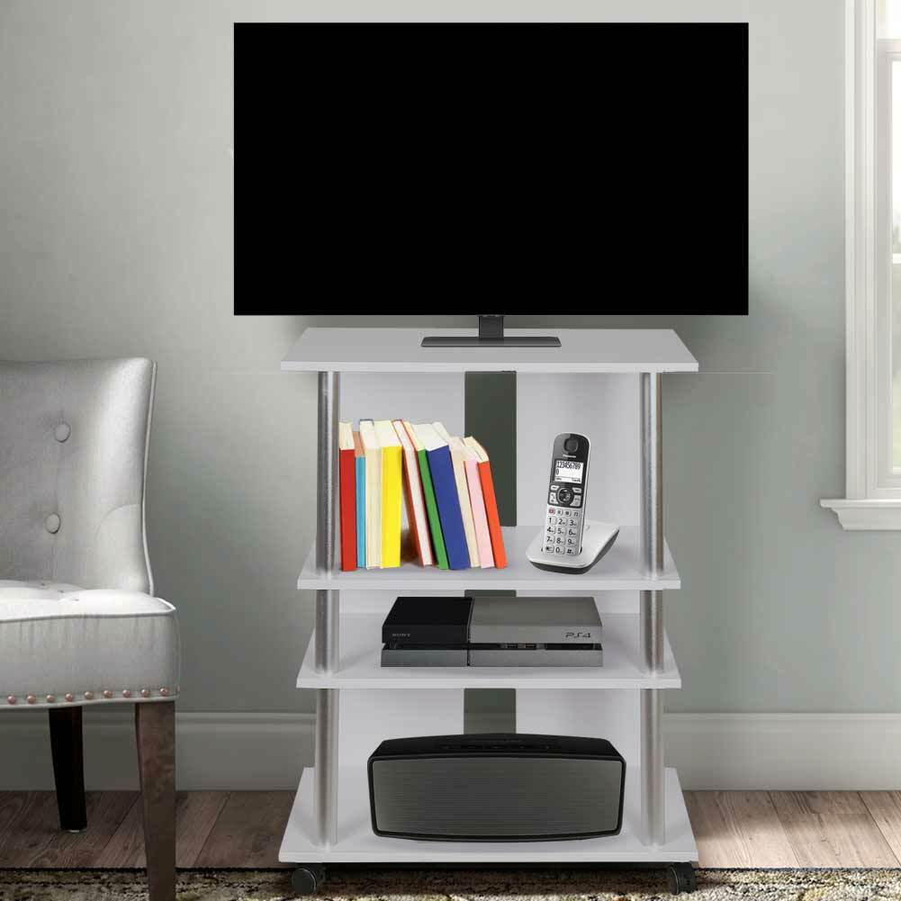Mobile TV in Legno con 3 Ripiani e Ruote Mobiletto Carrello televisore Bianco