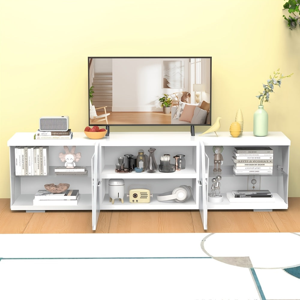 Mobile TV moderno da 150cm con illuminazione LED bianca integrata, progettato per trasformare il vostro spazio living. Questa unità di intrattenimento combina funzionalità e design contemporaneo, offrendo ampio spazio di contenimento per dispositivi multimediali, console di gioco e accessori. La struttura robusta supporta televisori di grandi dimensioni, mentre l'illuminazione LED...