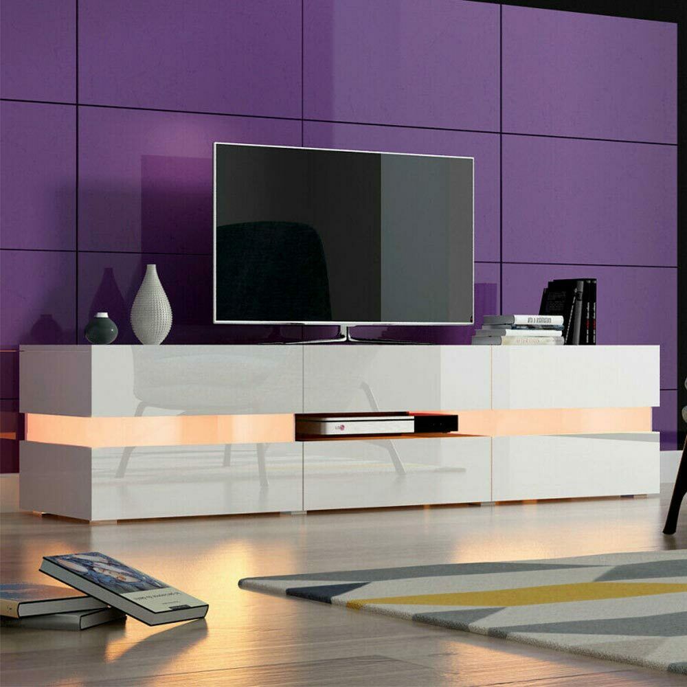 1 x Mobile TV Porta Televisore con Luci LED Telecomando Design Moderno 3 Ante Bianco