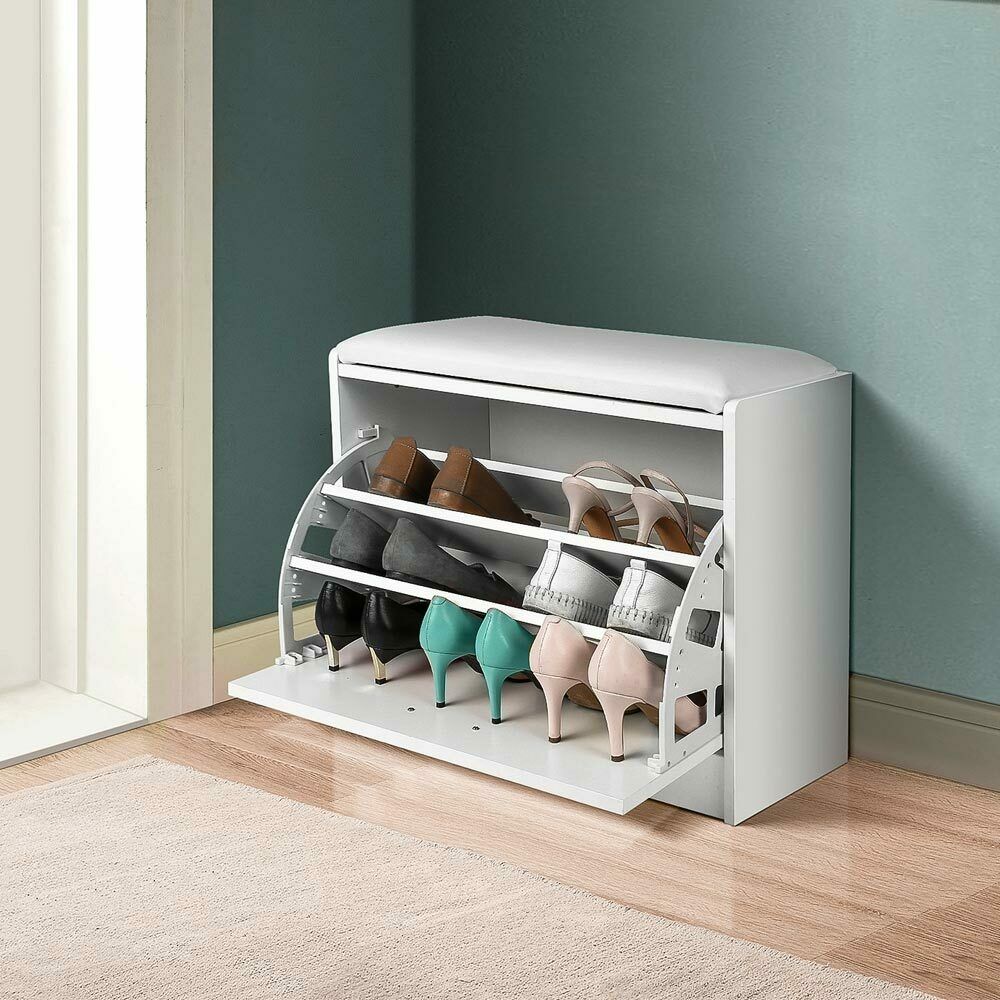 Dalle dimensioni di appena 60 x 30 x 48 cm questa panchina scarpiera può essere posizionata praticamente ovunque, come dietro porte e armadi o all'ingresso di casa tua occupando il minimo ingombro.