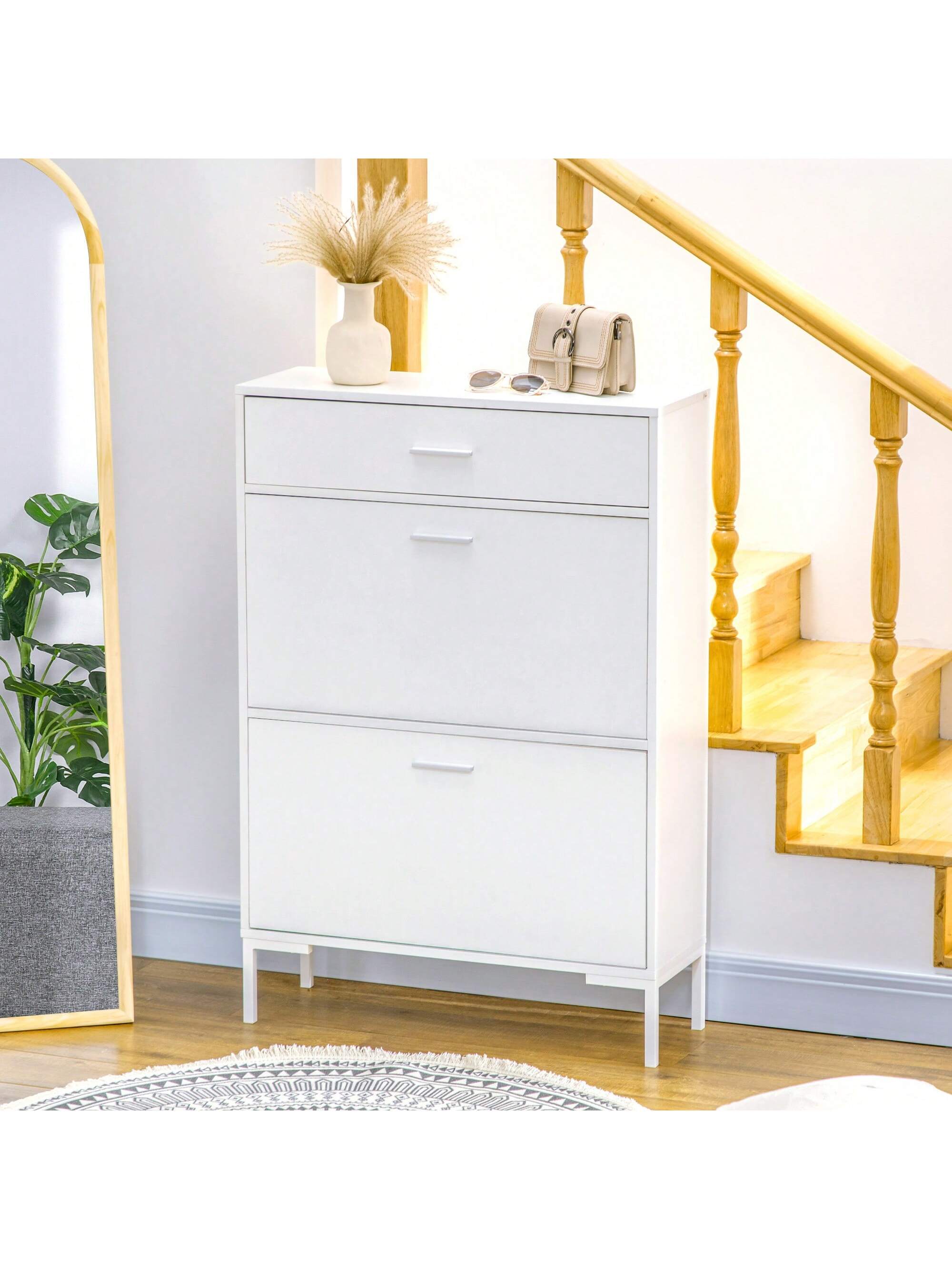 Mobile Portascarpe Scarpiera Moderna per 12 Paia di Scarpe con 2 Ante a Ribalta