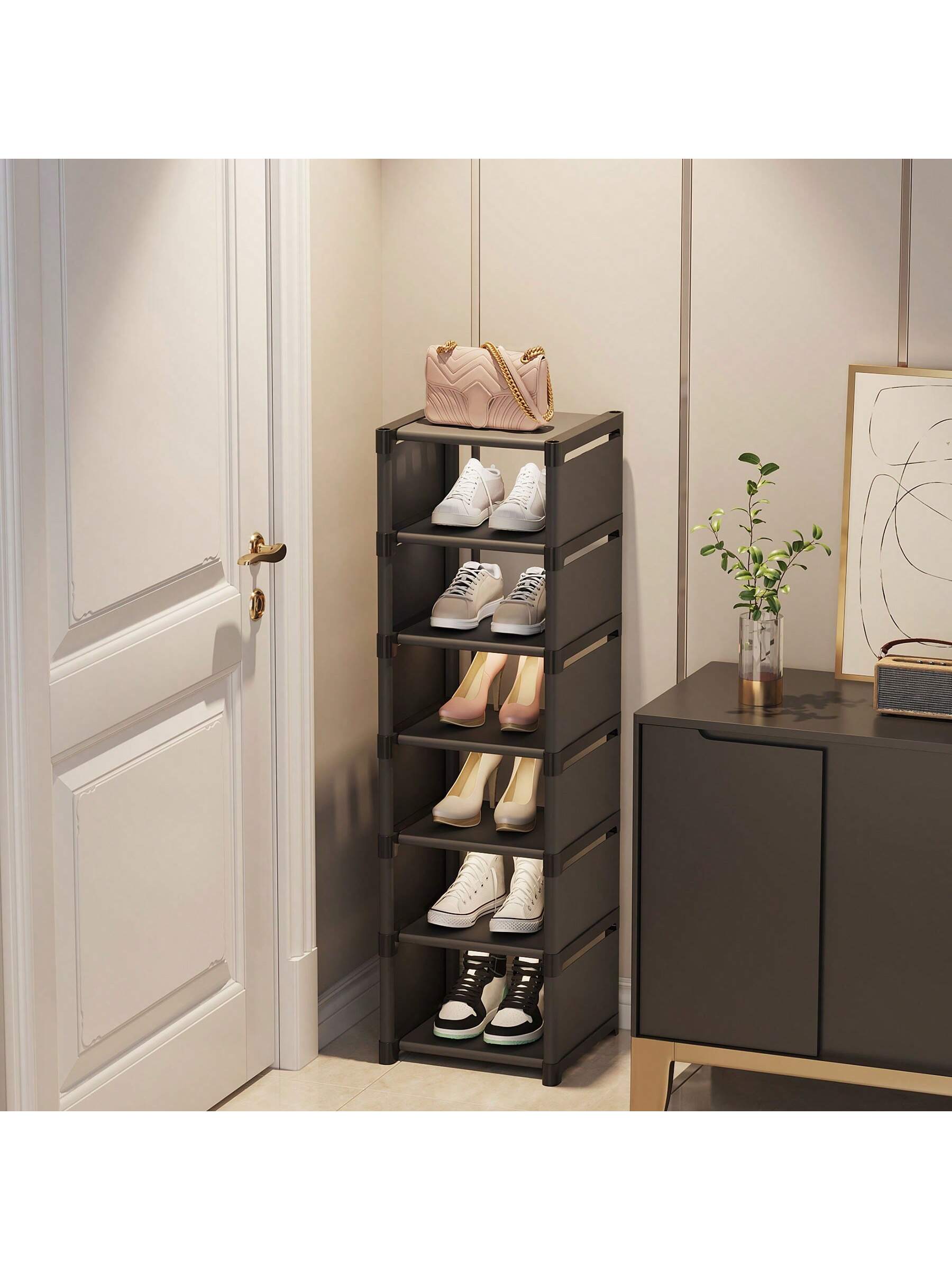 1 pezzo nero multistrato DIY plastico & acciaio tubo Scarpiera semplice fila unica Scarpa Credenza , facile Scarpa stoccaggio Organizzatore per corridoio , camera da letto e soggiorno Colore: nero Tessuto: Polipropilene Misure del prodotto in cm : Misure Altezza Larghezza Lunghezza 4 ° piano 56 26 27 5° piano...