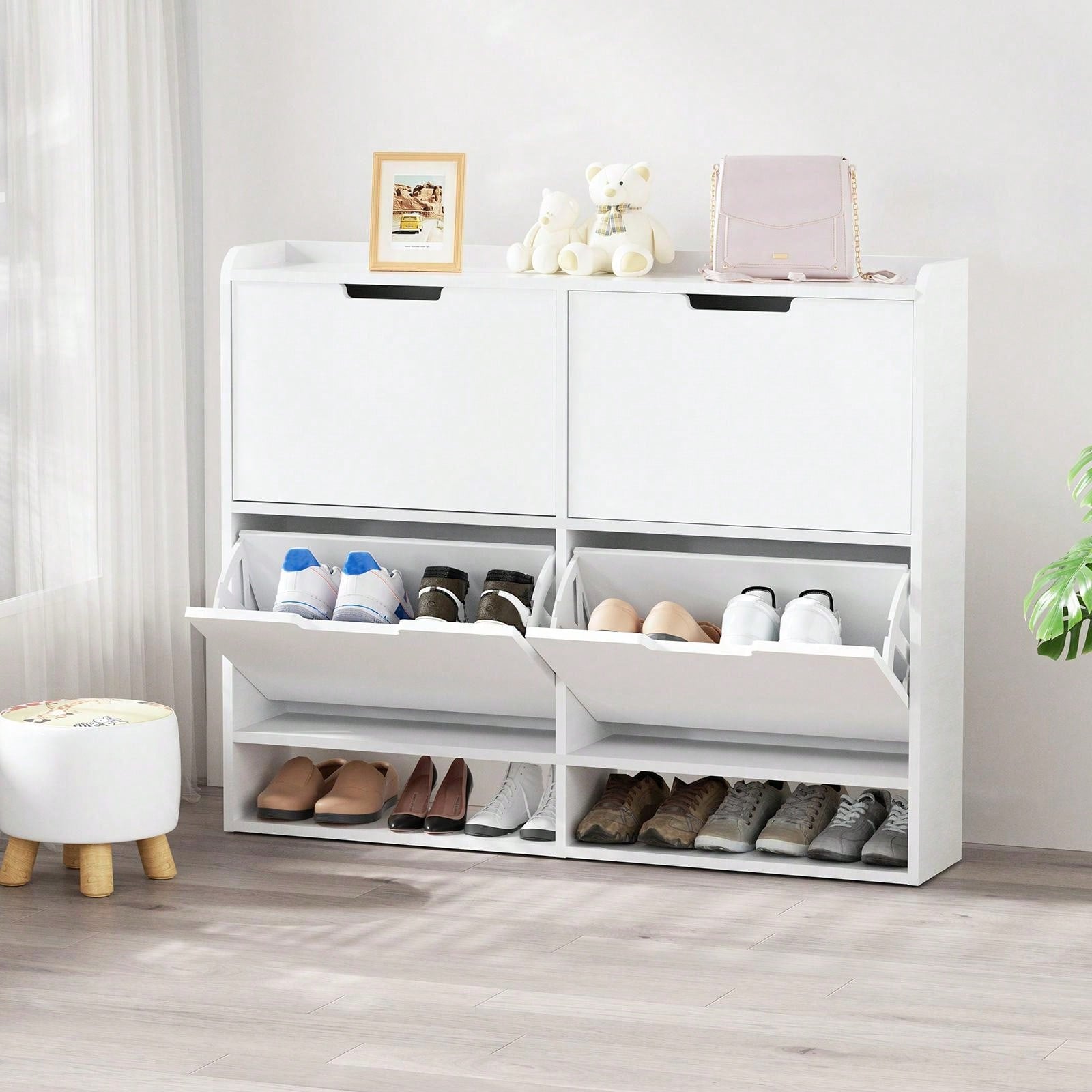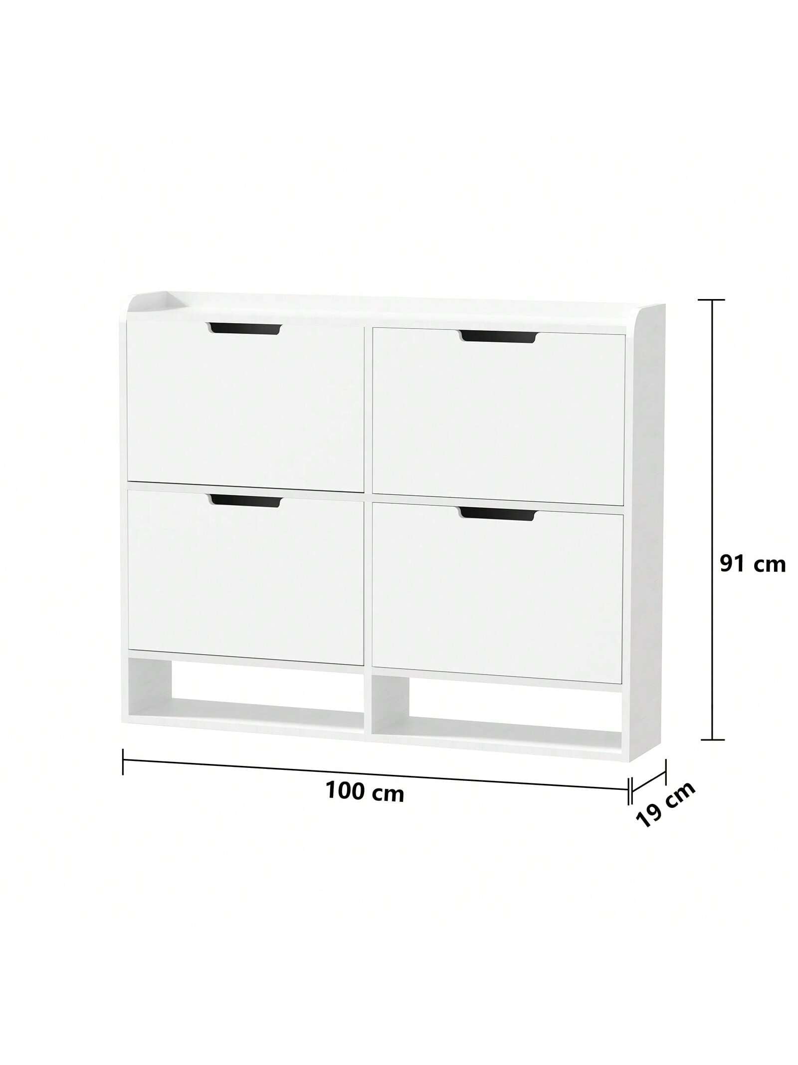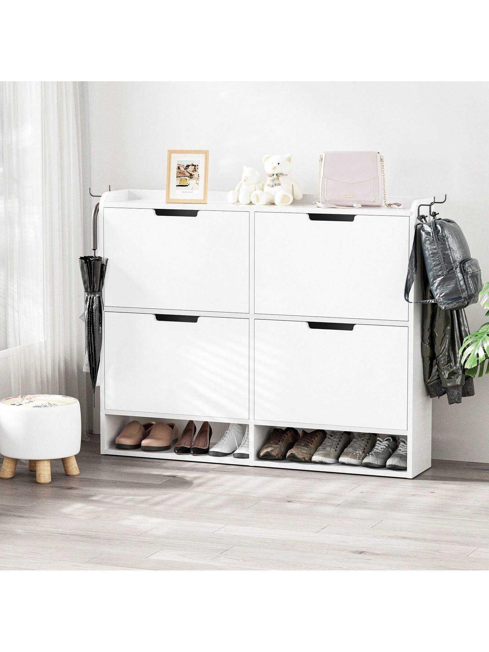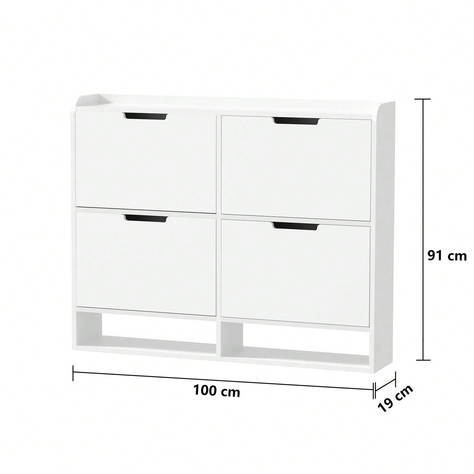 Scarpiera Ribaltabile per scarpe con 4 ante stretta, scarpiera con 8 ripiani bianco