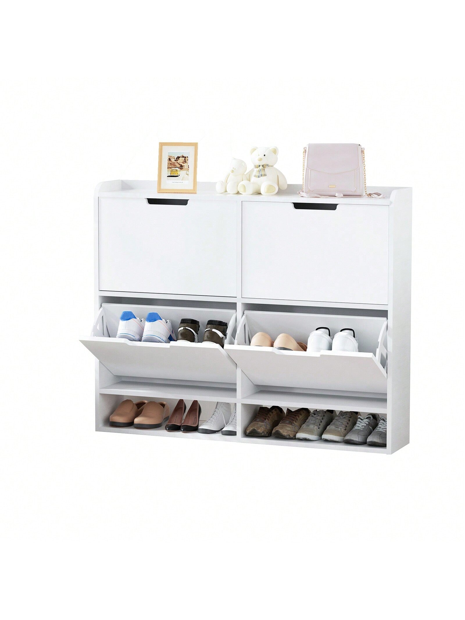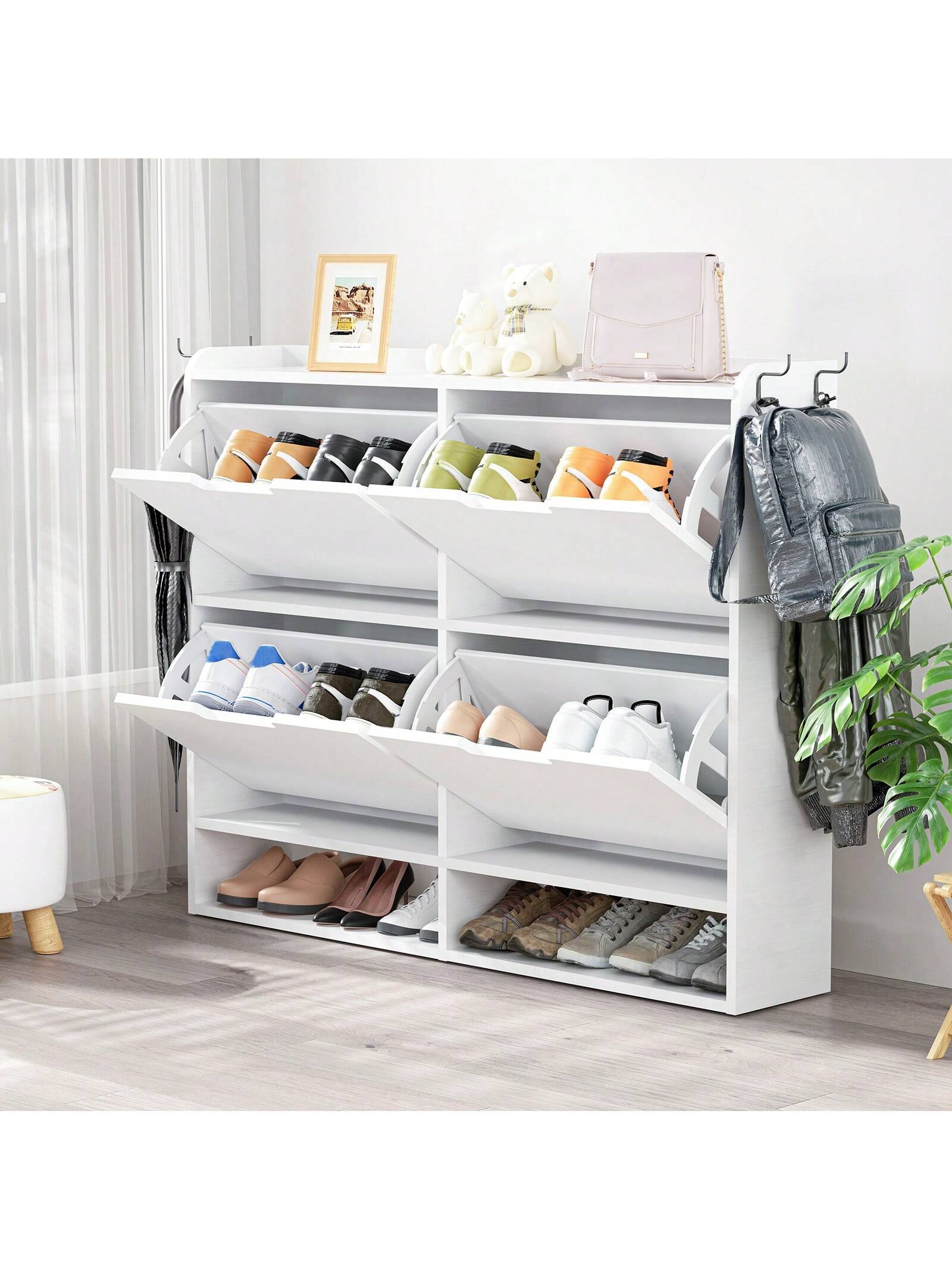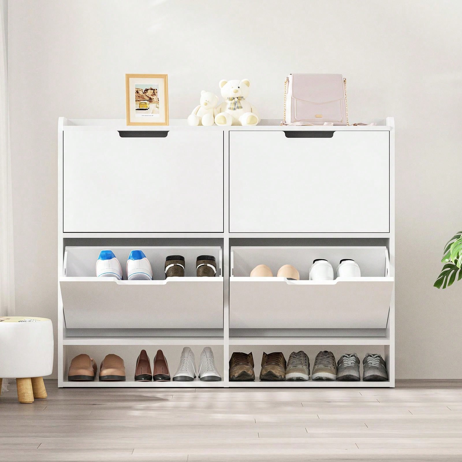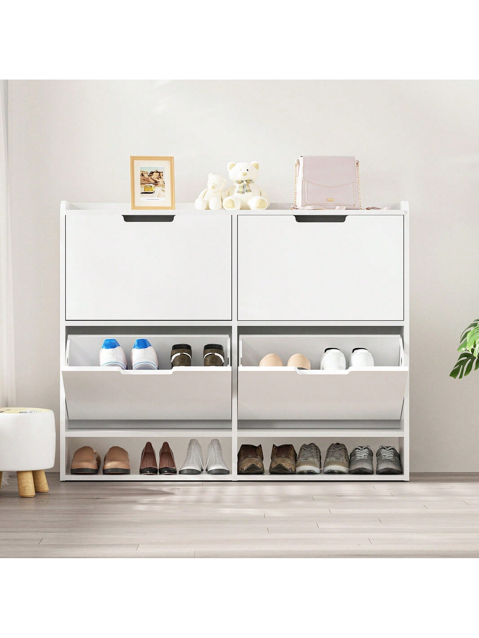 Scarpiera Ribaltabile per scarpe con 4 ante stretta, scarpiera con 8 ripiani bianco