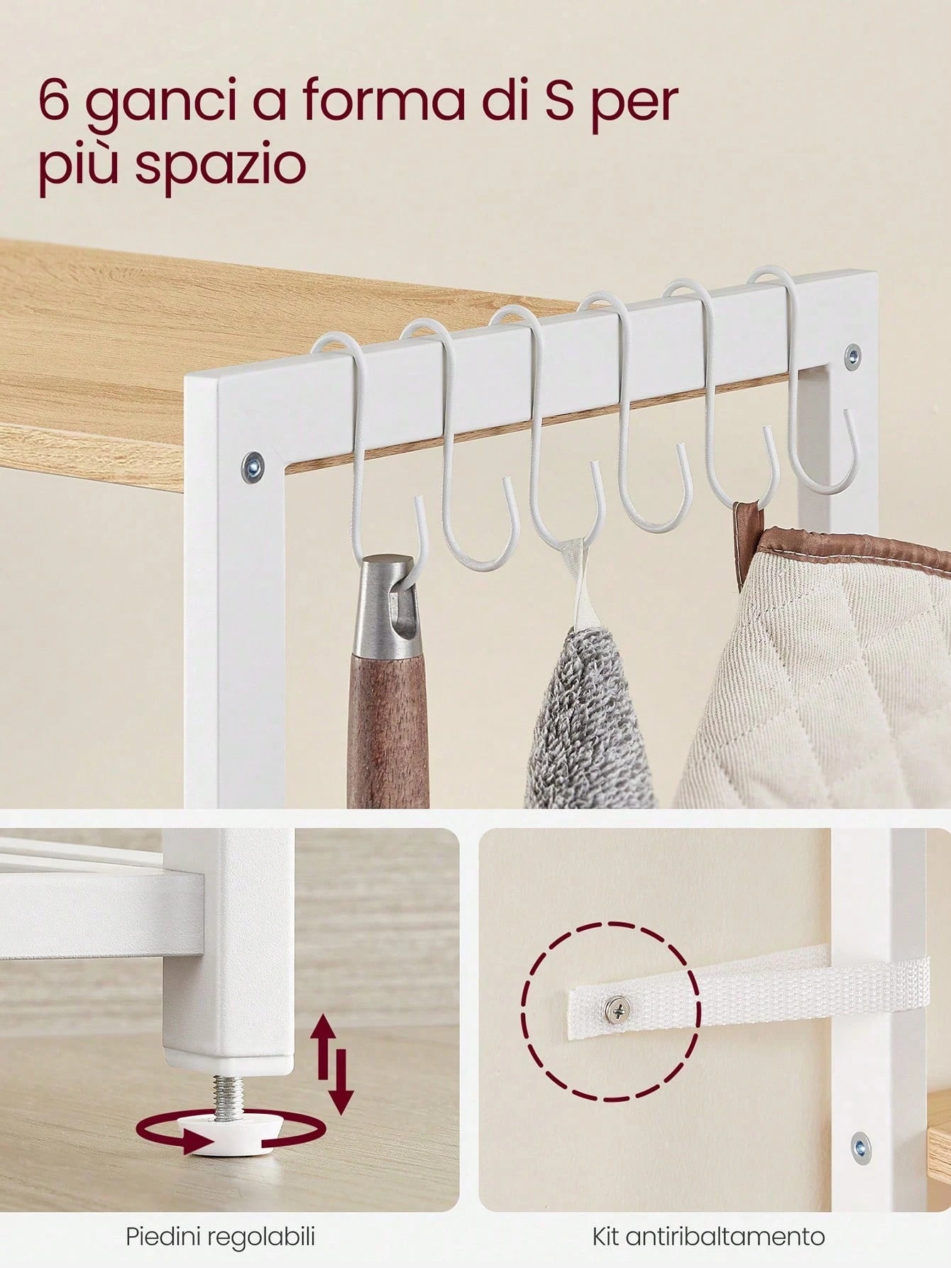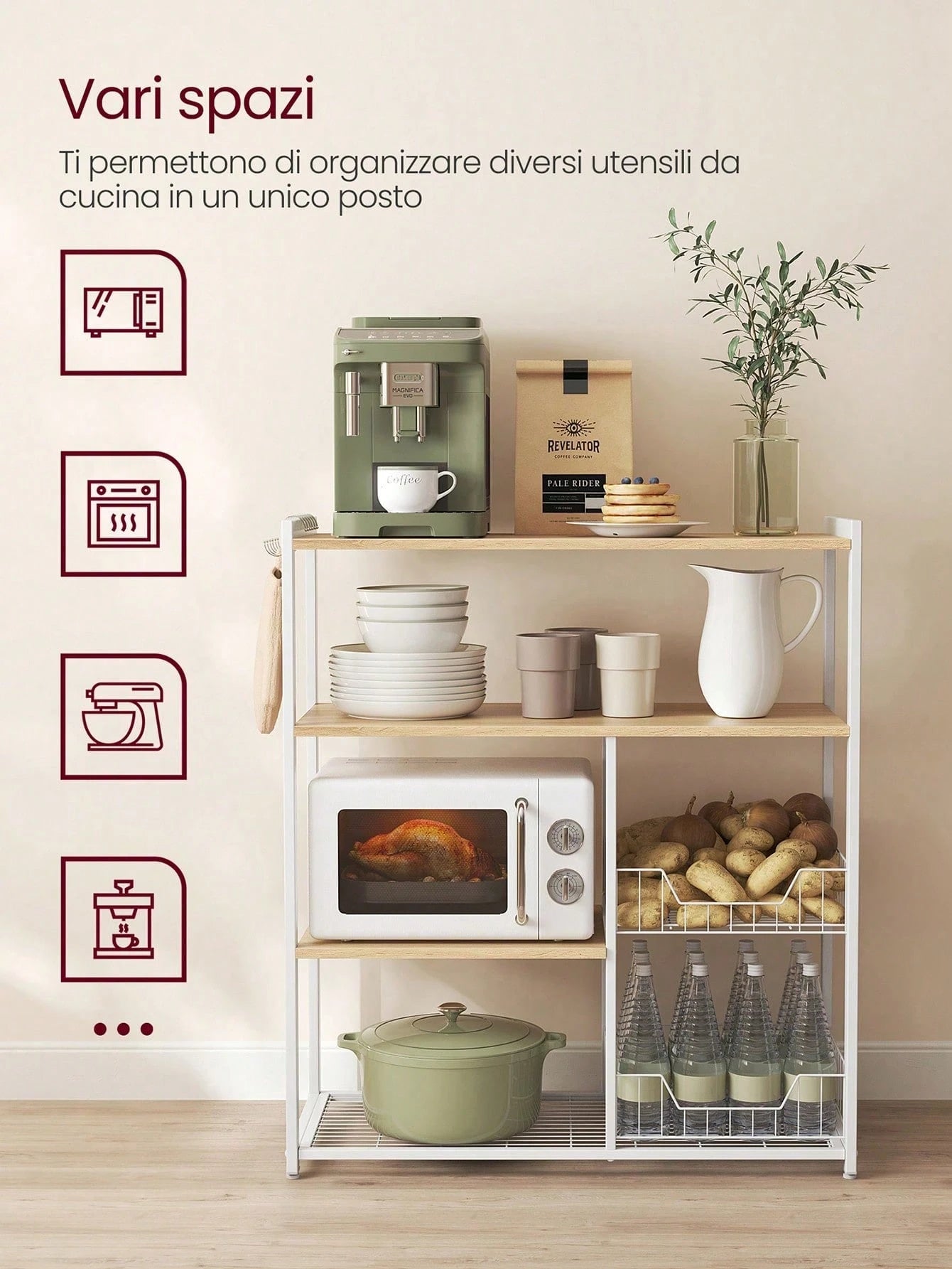 Scaffale multifunzionale per microonde e organizzazione cucina.