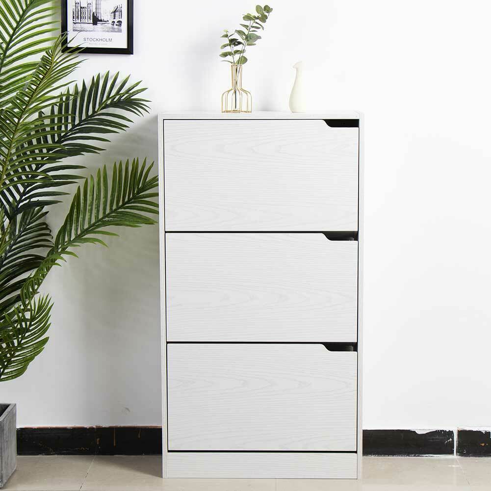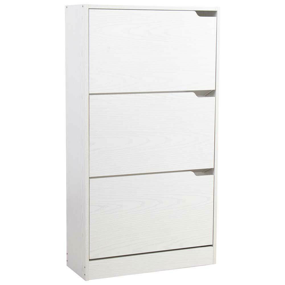 Scarpiera 3 Ante Ripiani Doppia Profondita Legno MDF 63x24x115 Bianco Frassinato