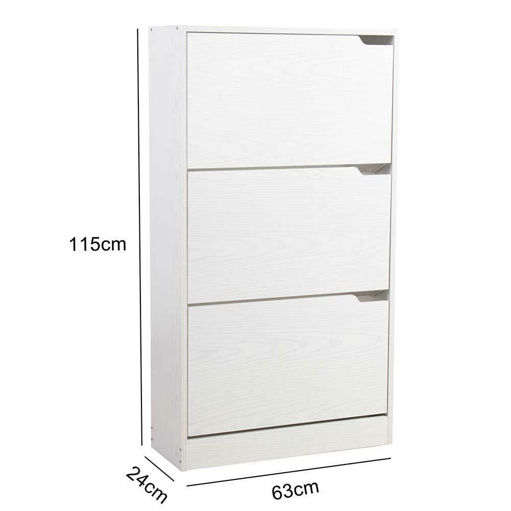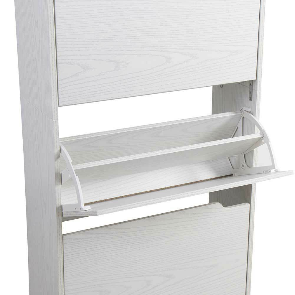 1 x Scarpiera 3 Ante Ripiani Porta Scarpe Doppia Profondita Legno MDF 63x24x115 Bianco Frassinato
