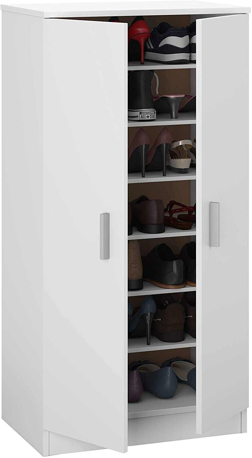 Questa incredibile scarpiera portascarpe è dotata di solida struttura in legno MDF in un bellissimo colore bianco fornita di ben 7 ripiani portascarpe in varie altezze che ti permetteranno di inserire qualsiasi tipo di calzatura anche stivali e scarpe col tacco, fornita inoltre di chiusura a doppia anta che proteggono le scarpe dalla polvere ed evitano di averele in bella vista.