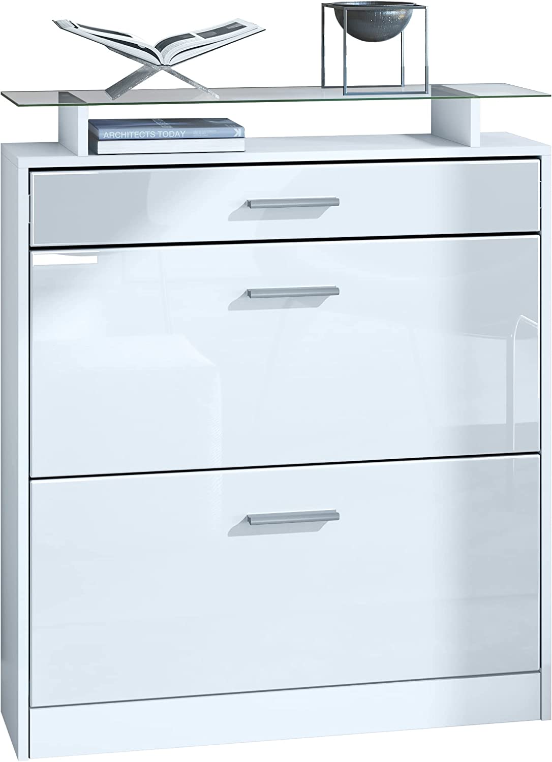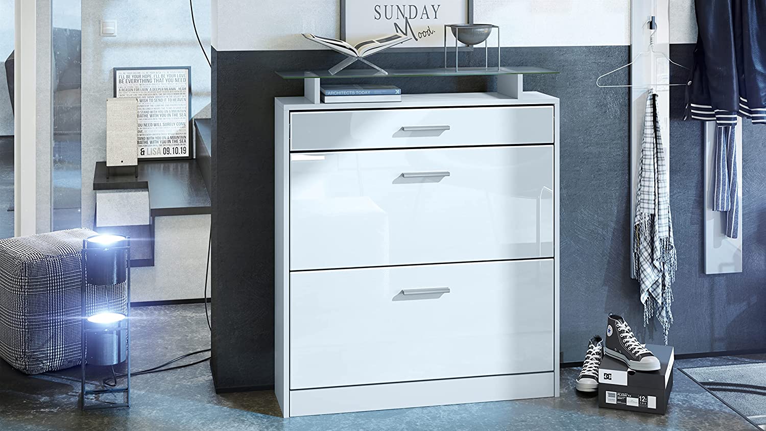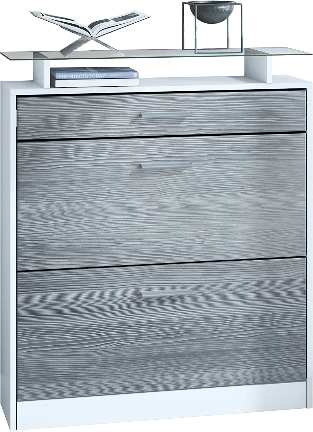 La scarpiera salvaspazio si presenta come un pratico mobile dal design moderno per l'ingresso. La scarpiera sottile è dotata di due ganci per scarpe con doppi supporti e di un cassetto scorrevole. Inoltre, il ripiano in vetro sulla scarpiera offre spazio per diversi accessori. Con le guarnizioni incluse è...