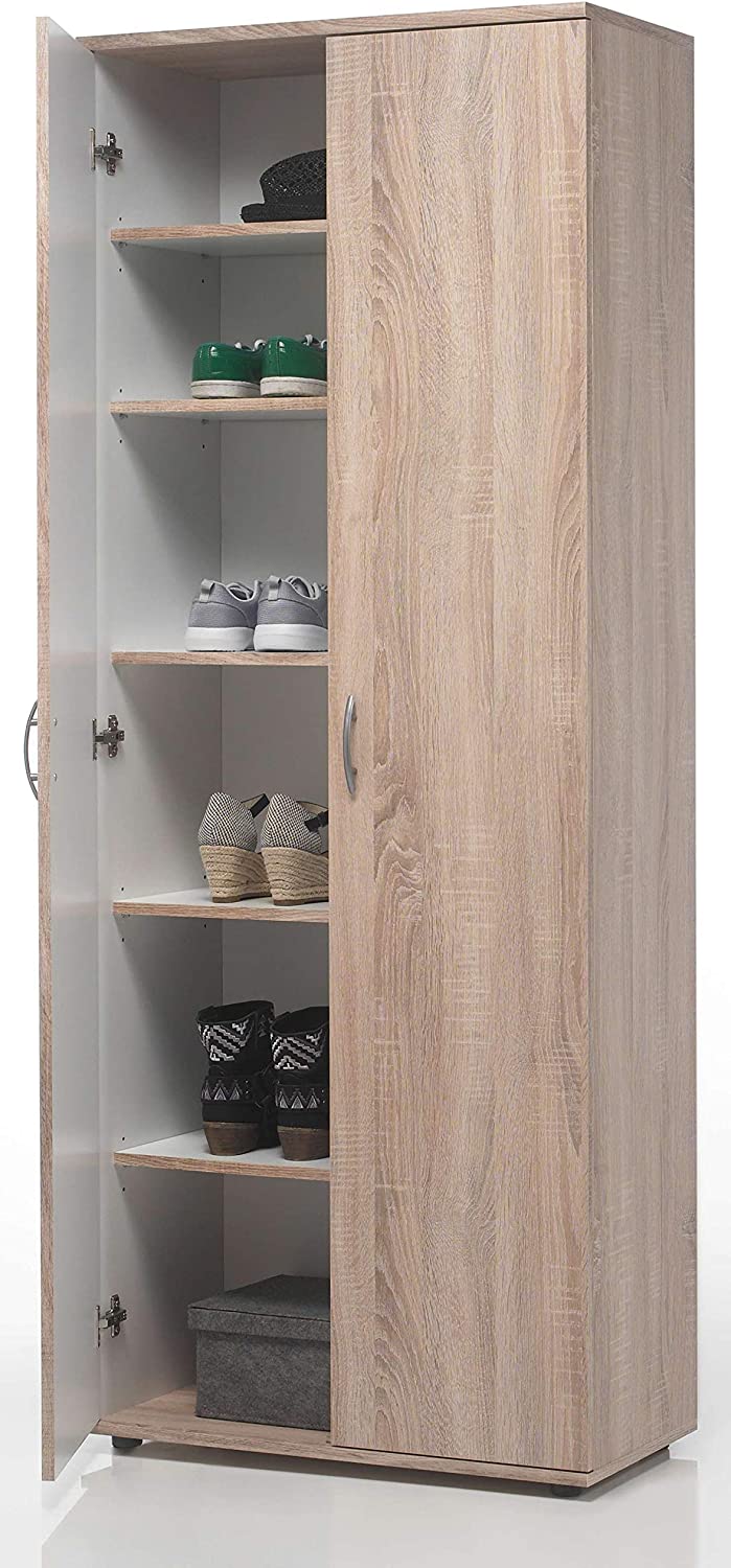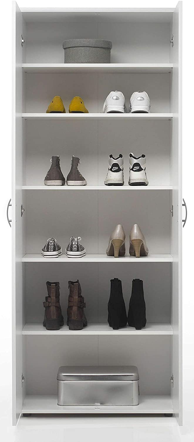 Scarpiera con 2 Ante 5 Ripiani Interni, 70x176x34 cm (Bianco)