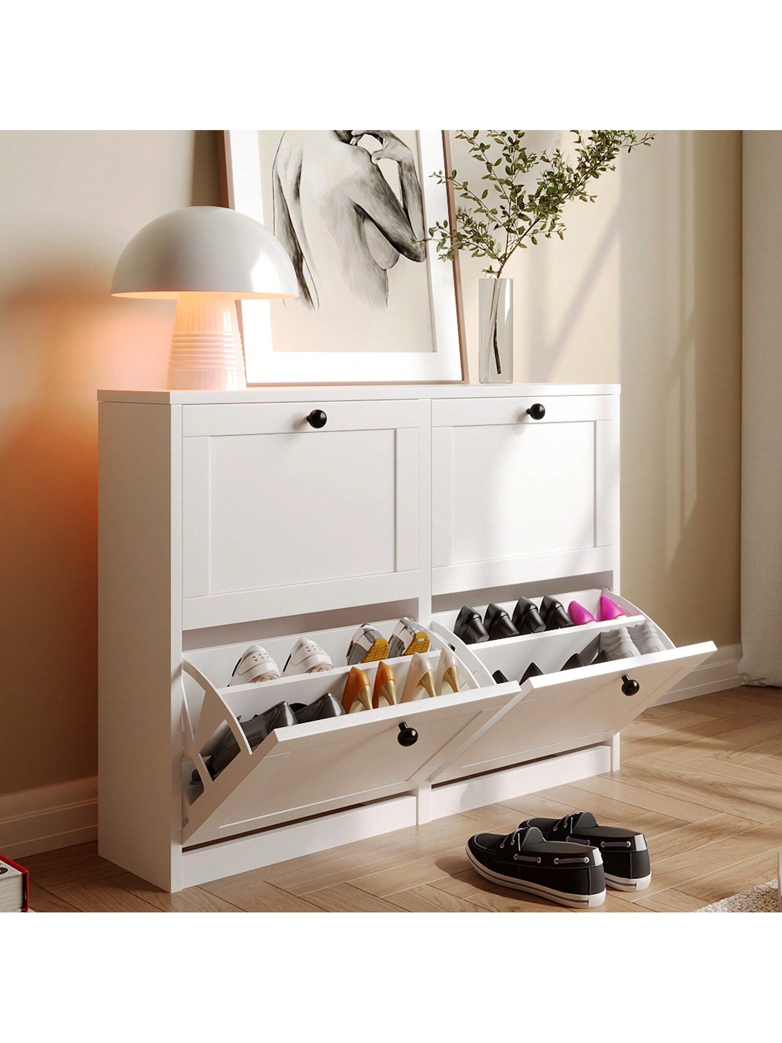 • elegante e organizzato con la nostra scarpiera con 4 cassetti ribaltabili. Con il suo design intelligente,