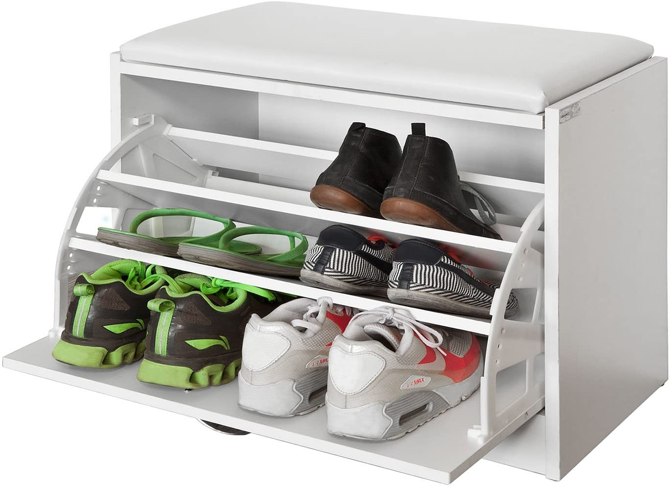 Scarpiera da Ingresso, Cassapanca,Portascarpe con Cuscino, Bianco