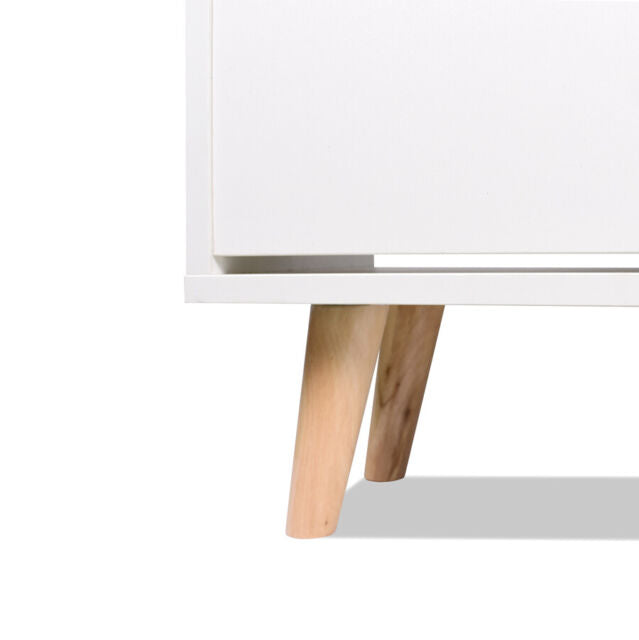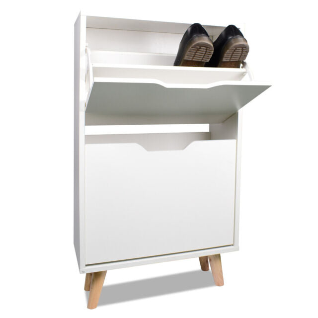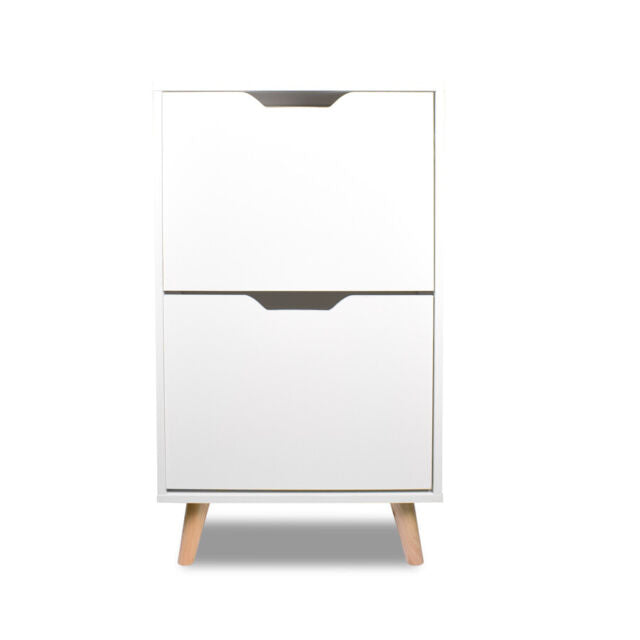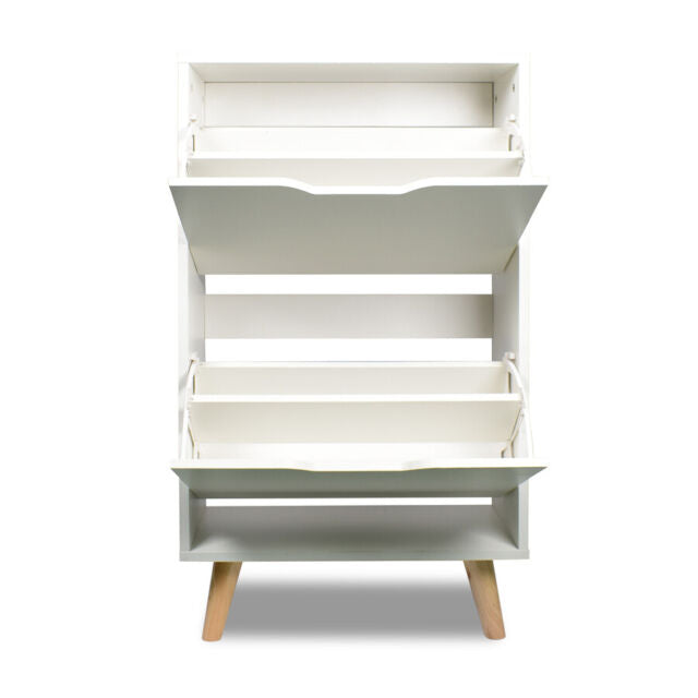 Scarpiera a 2 ripiani bianca con piedi in legno di pino