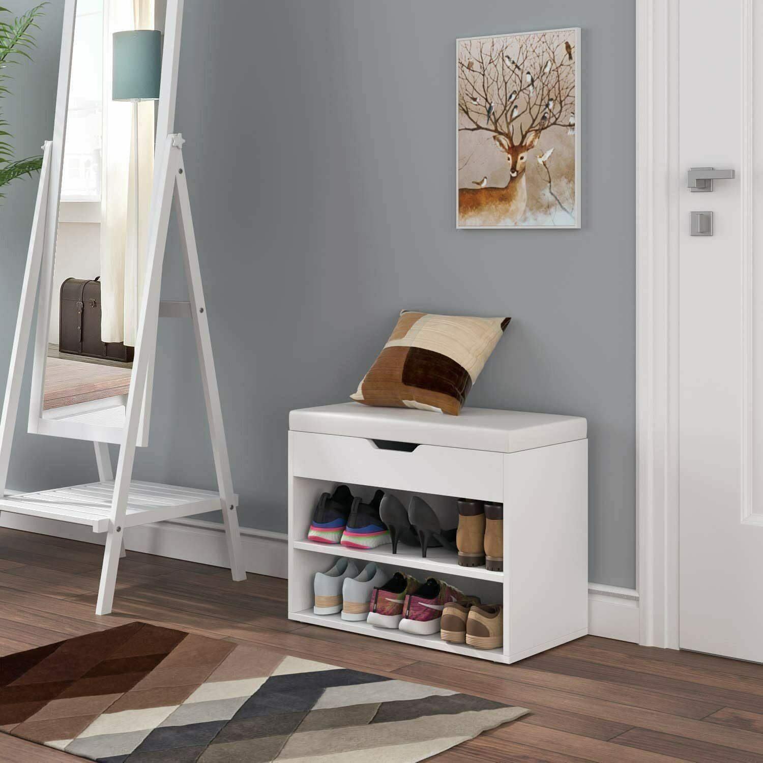 Scarpiera Ingresso Panca Scarpiera in Legno con Cuscino di Seduta