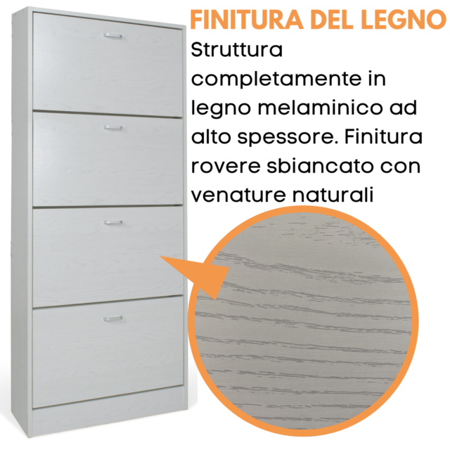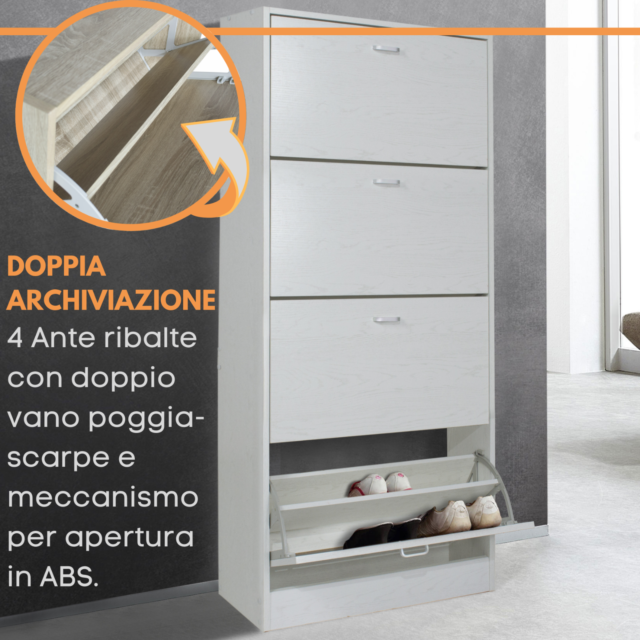 - Dimensioni scarpiera con 4 ante: cm. 63x24x150 h.