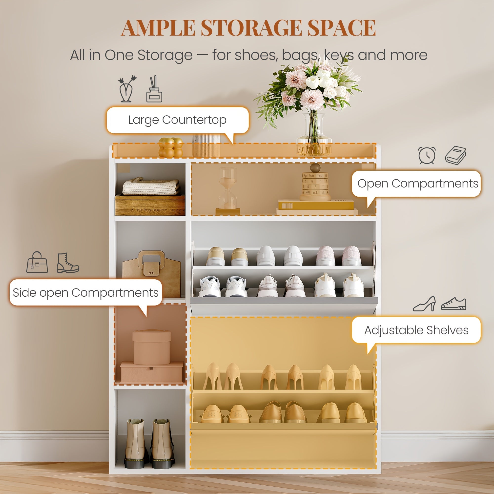• Dotata di 2 ante e 5 scomparti aperti regolabili, offre spazio per 8-12 paia di scarpe