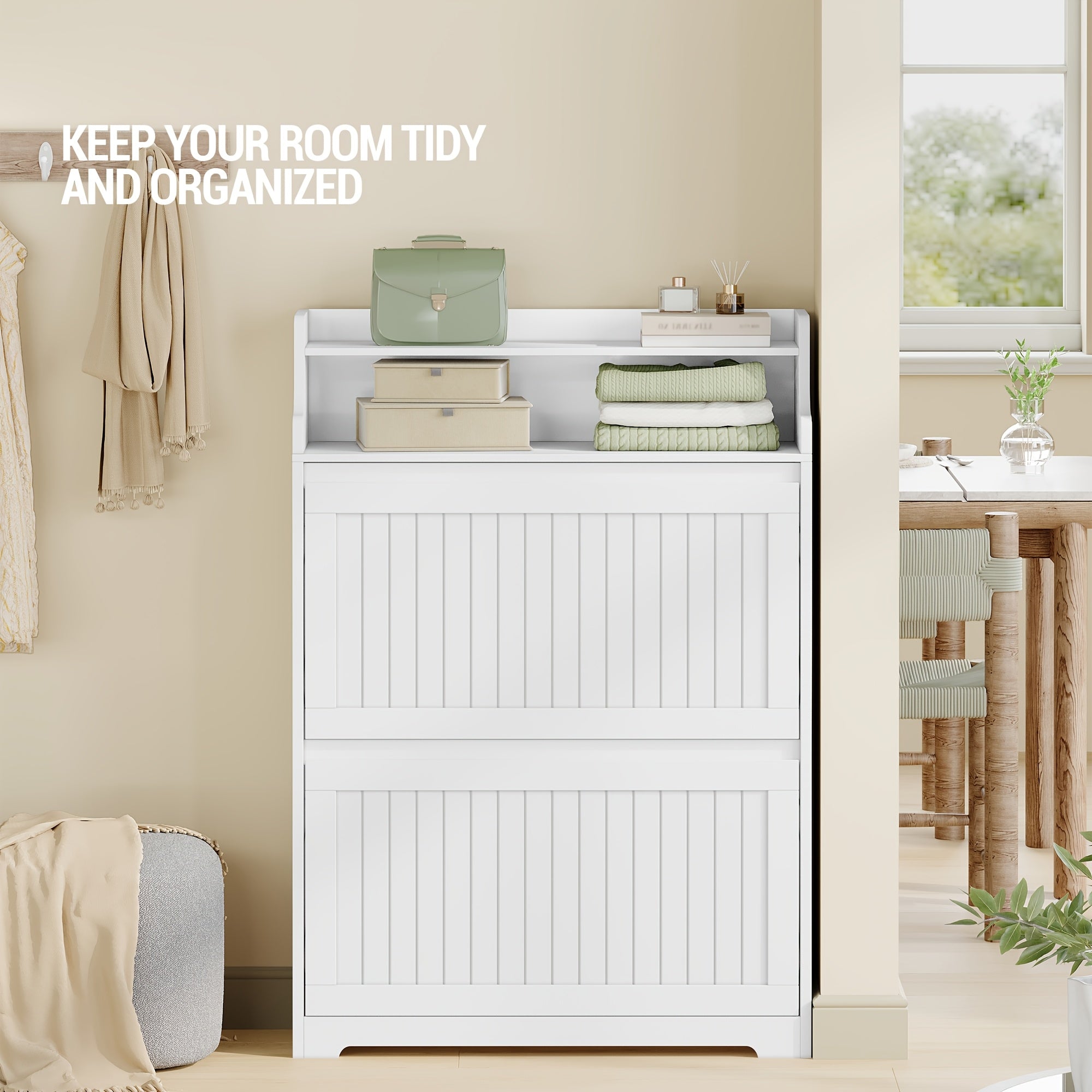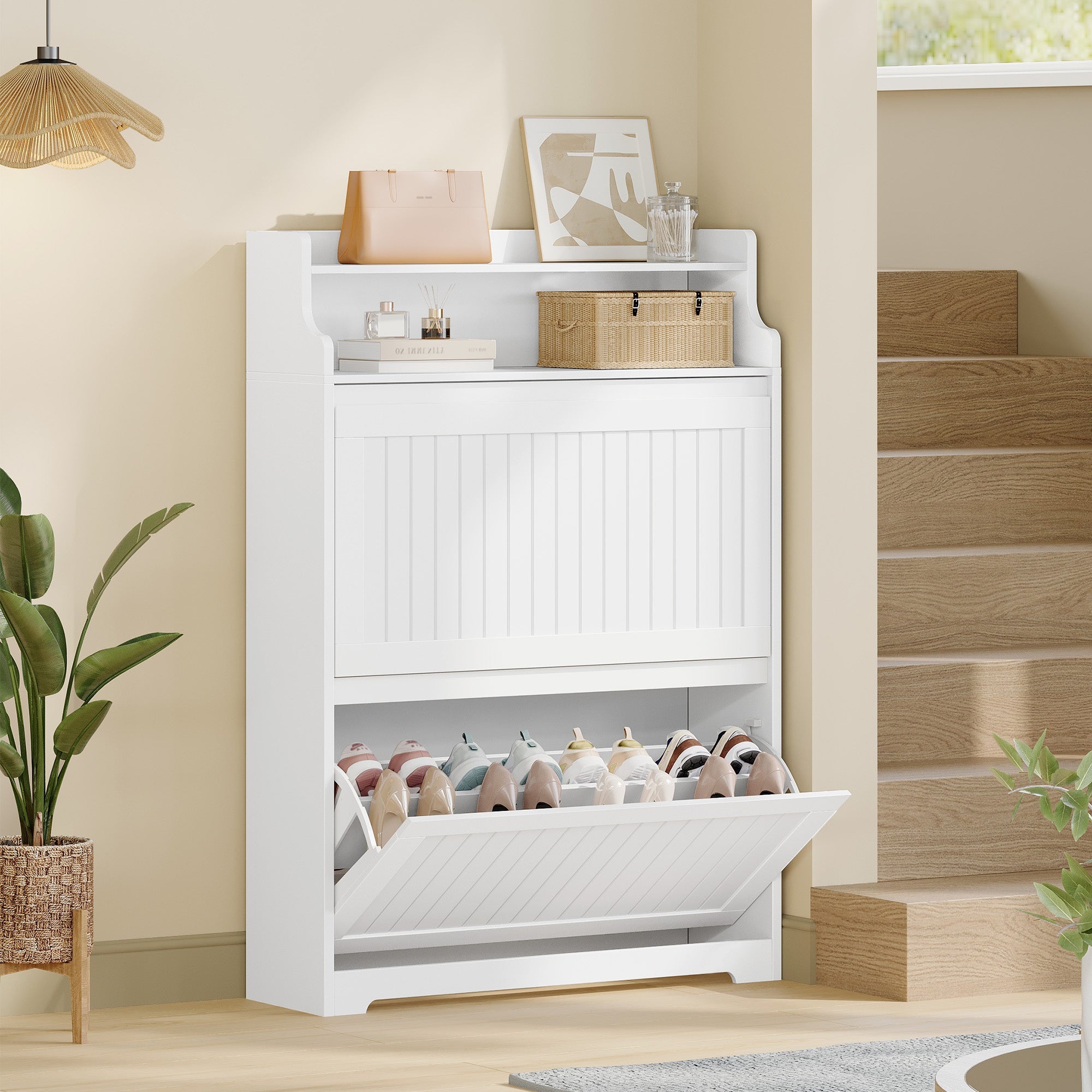 - Scarpiera stretta a 2 ante realizzata in legno duro di qualità, ideale per ottimizzare