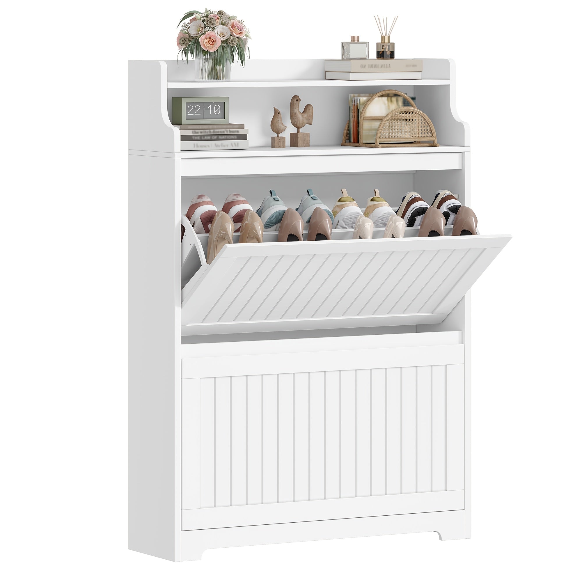 Scarpiera Stretta a 2 Ante Regolabile Contiene 16 Paia di Scarpe, Adatta per Ingresso