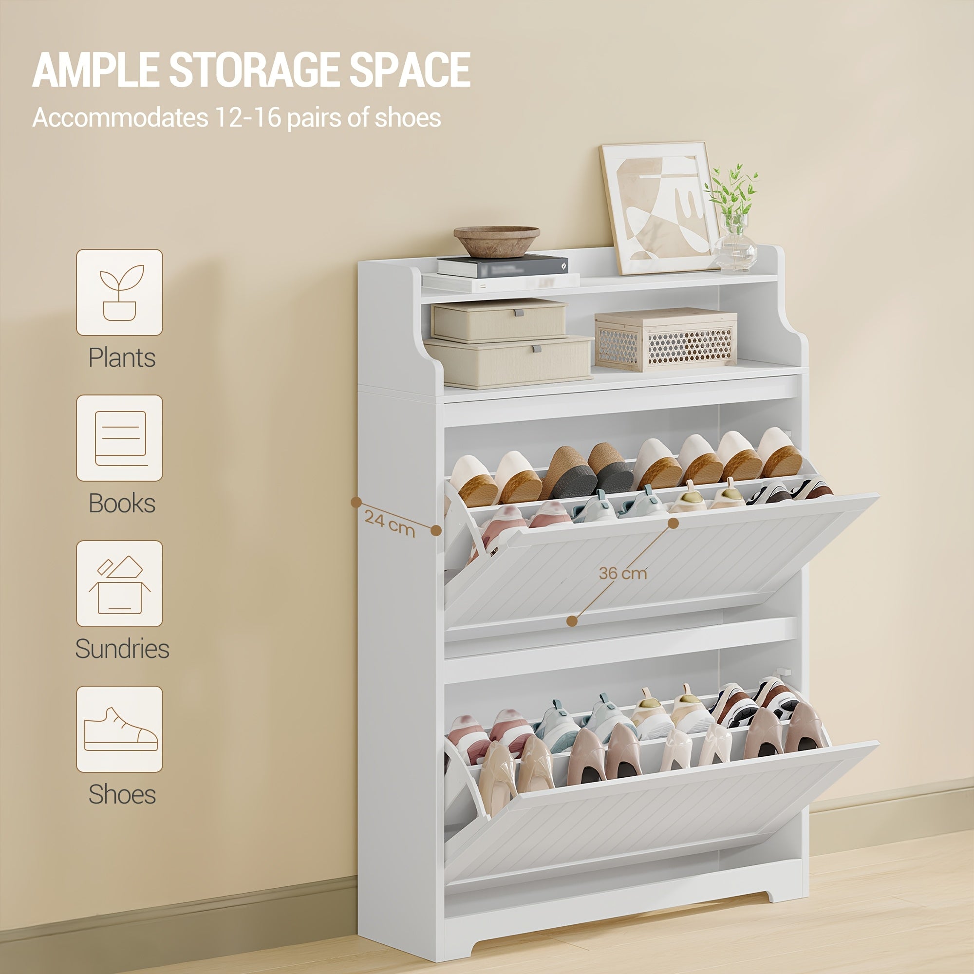 - lo spazio in ingresso, corridoio o guardaroba. Con capacità di 16 paia di scarpe e