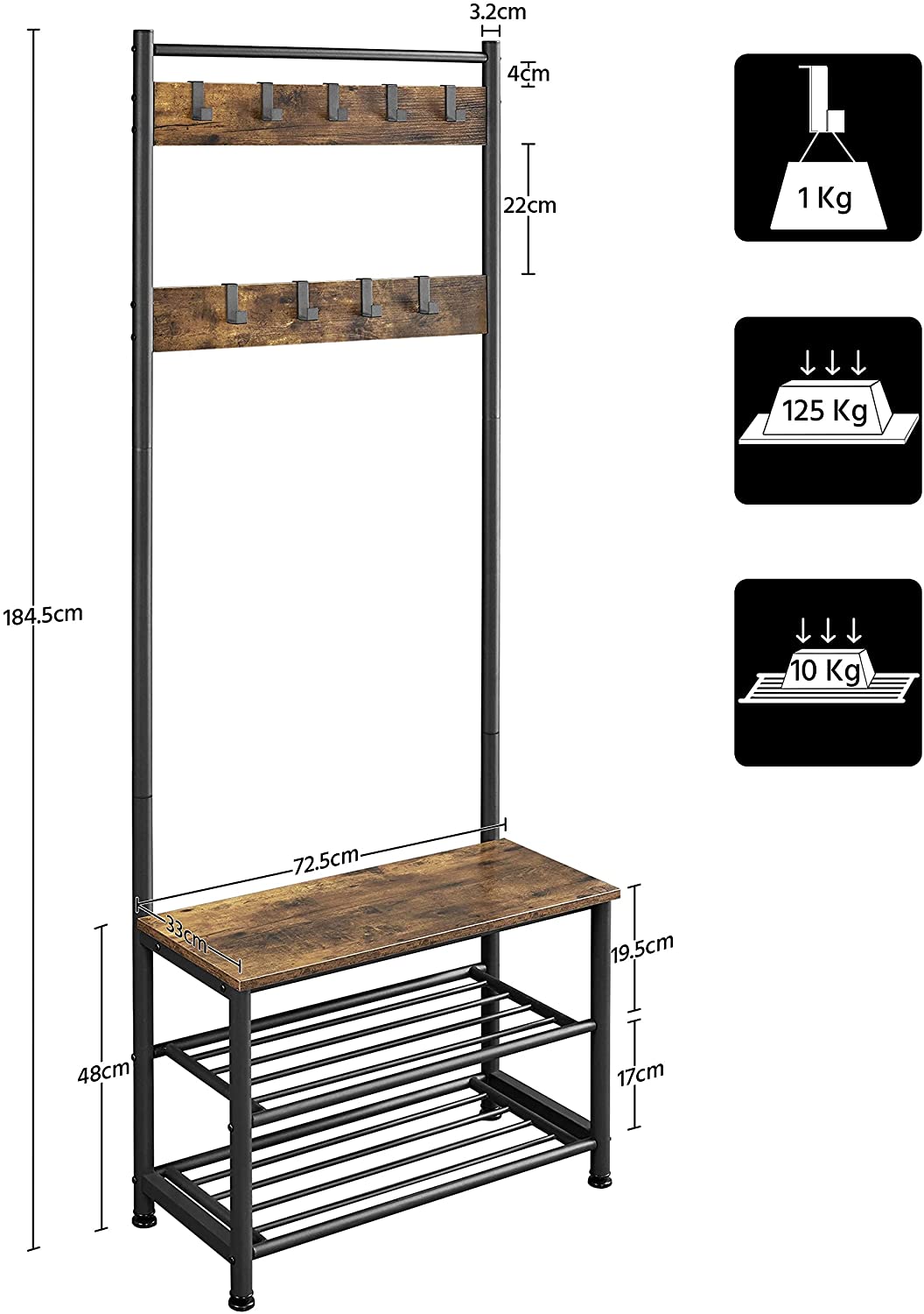Stand Appendiabiti con Scarpiera a 3 Ripiani Vintage Altezza 185 cm,