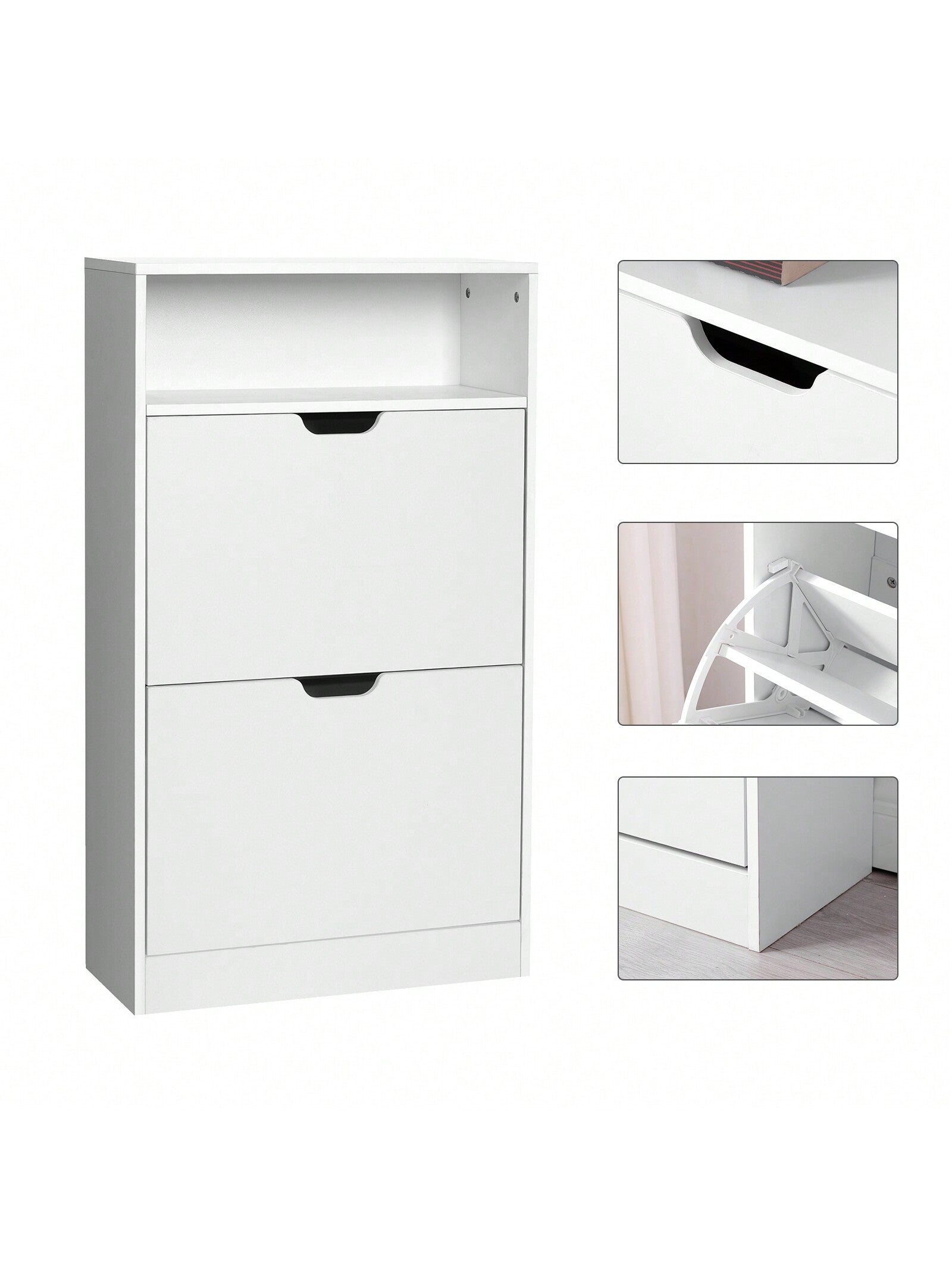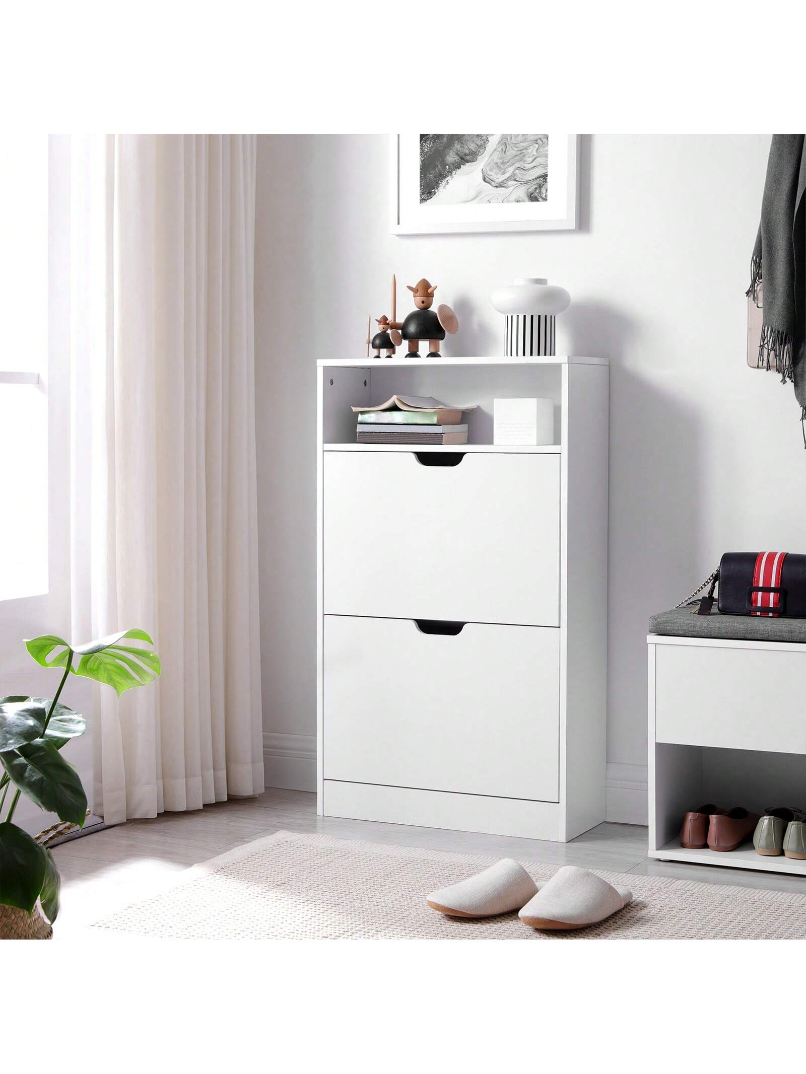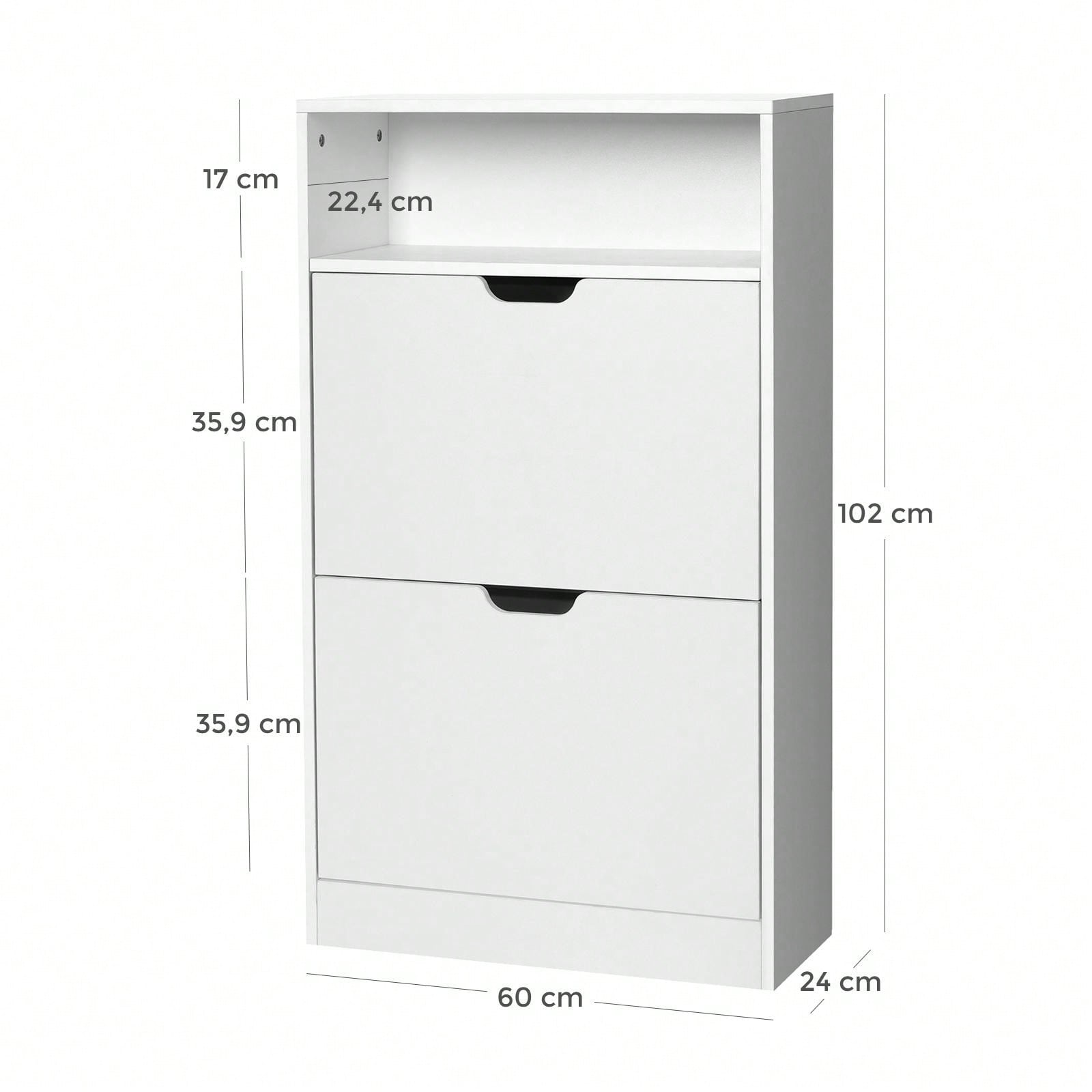 Vicco Scarpiera con 2 Scomparti a Ribalta Portascarpe con Ripiano 60 x 24 x 102 cm, Bianco