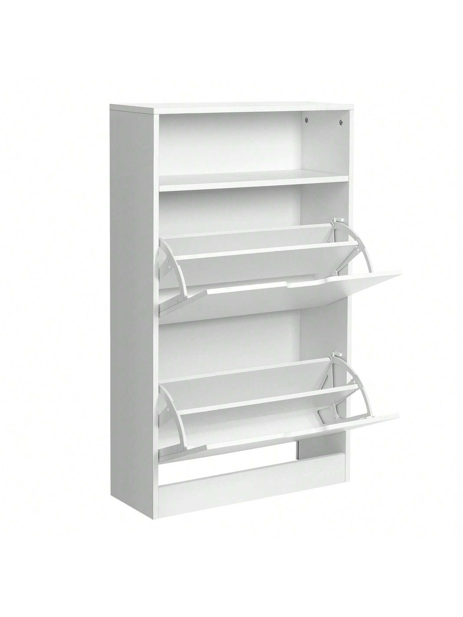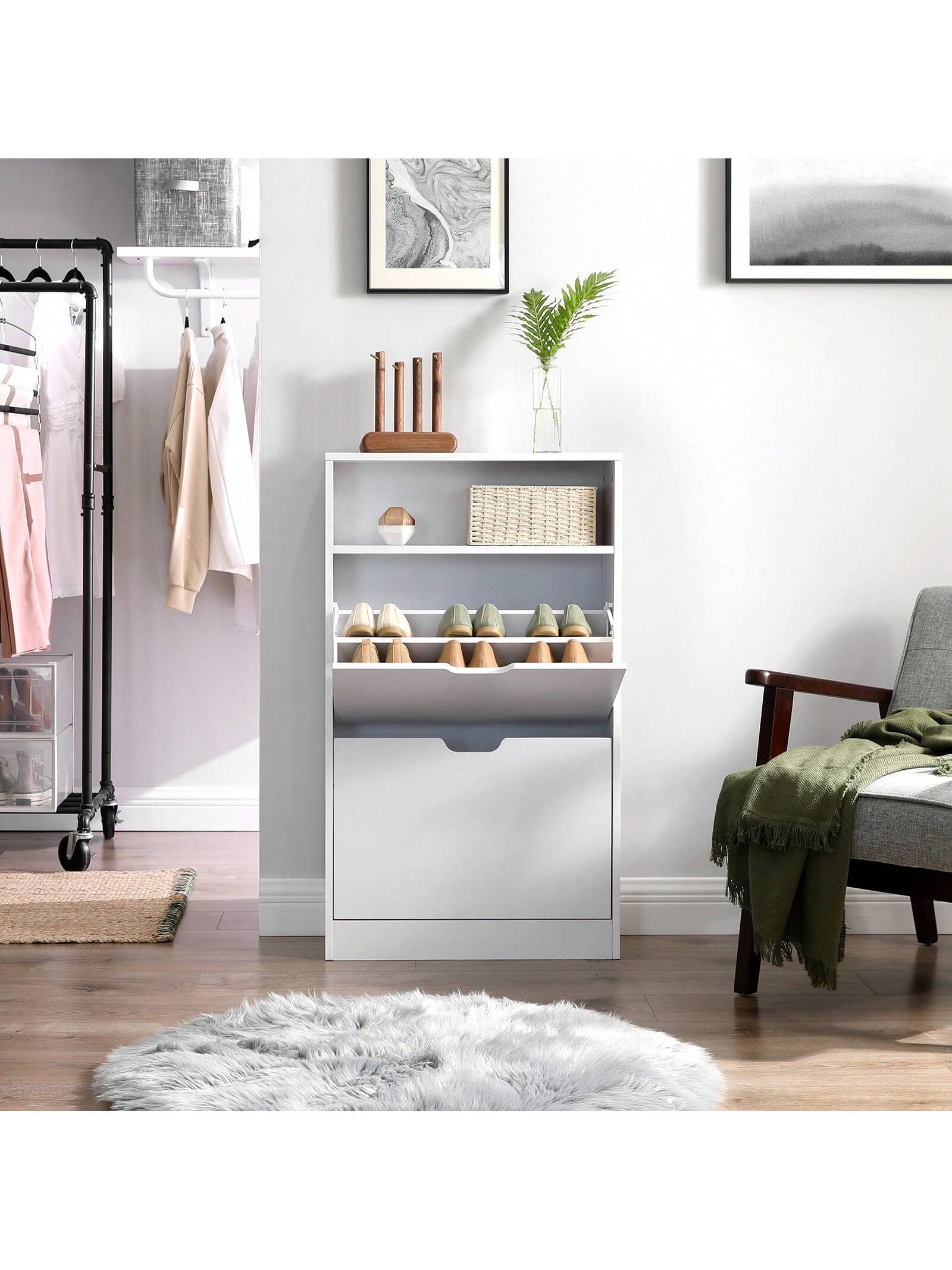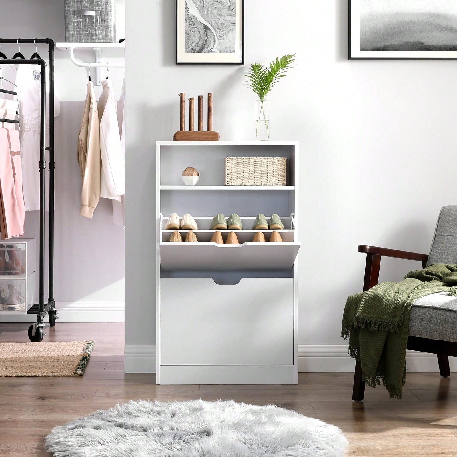 Vicco Scarpiera con 2 Scomparti a Ribalta Portascarpe con Ripiano 60 x 24 x 102 cm, Bianco