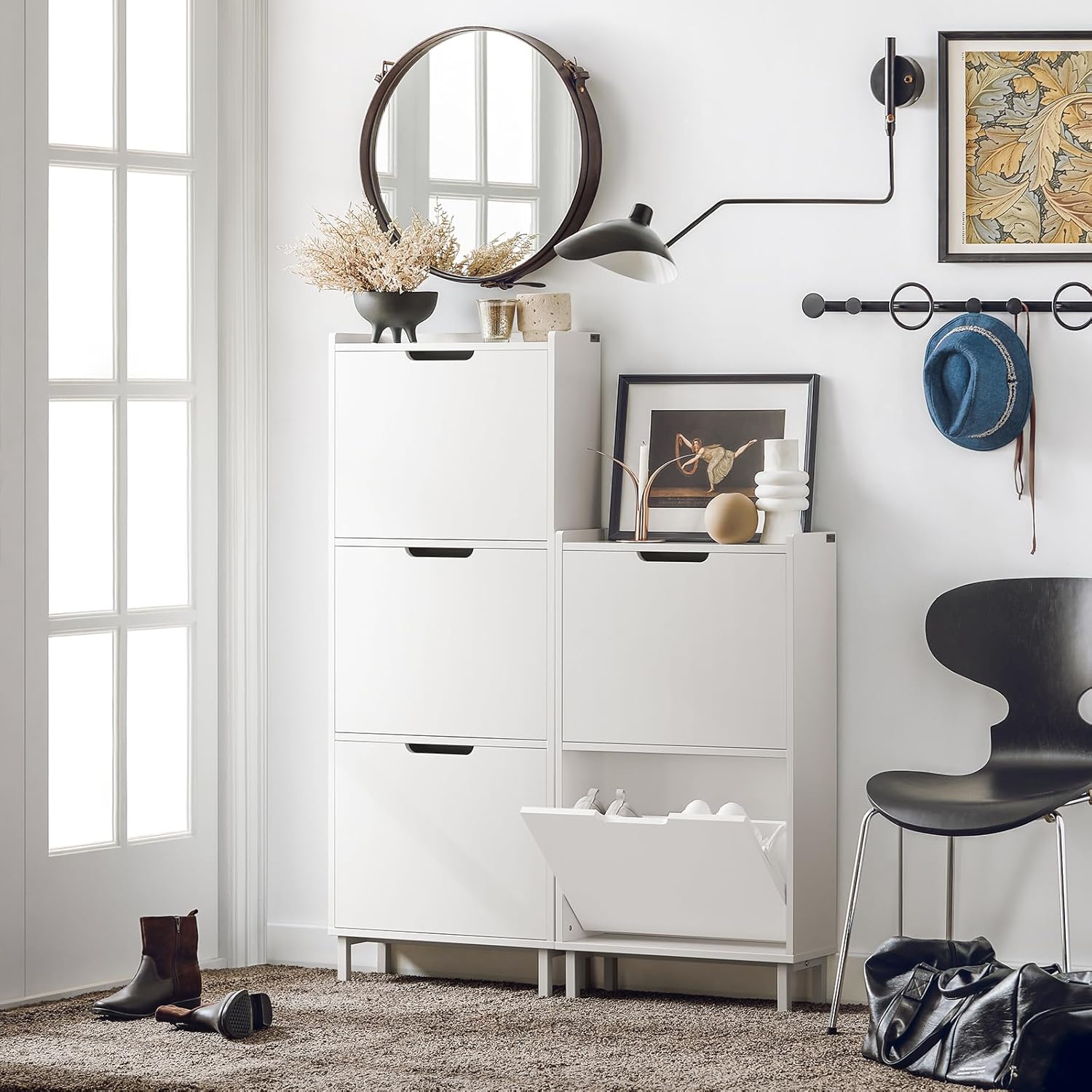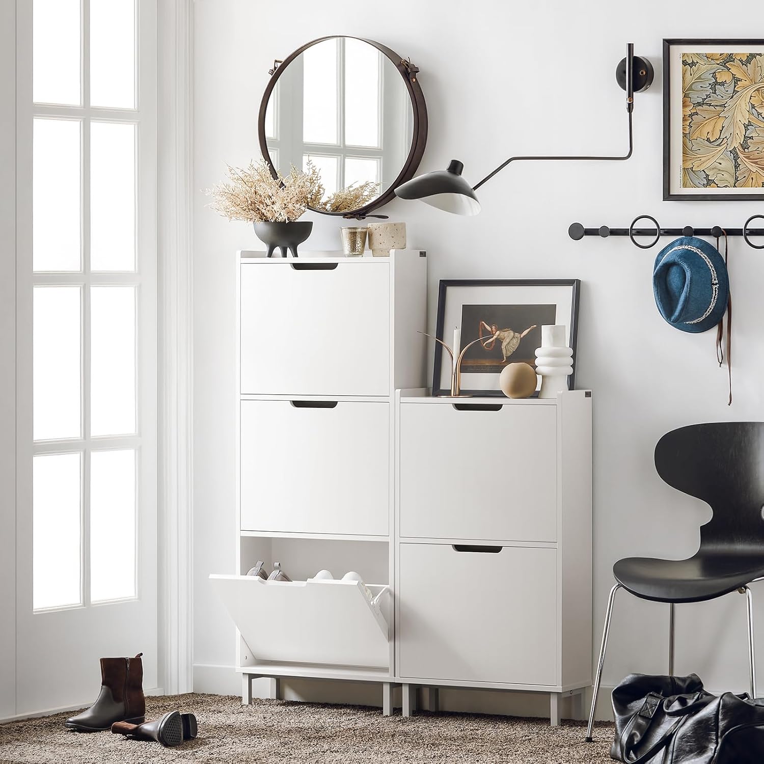 VICCO Mobiletto portascarpe con 4 ribalte Mobile ingresso salvaspazio Regolabili Bianca